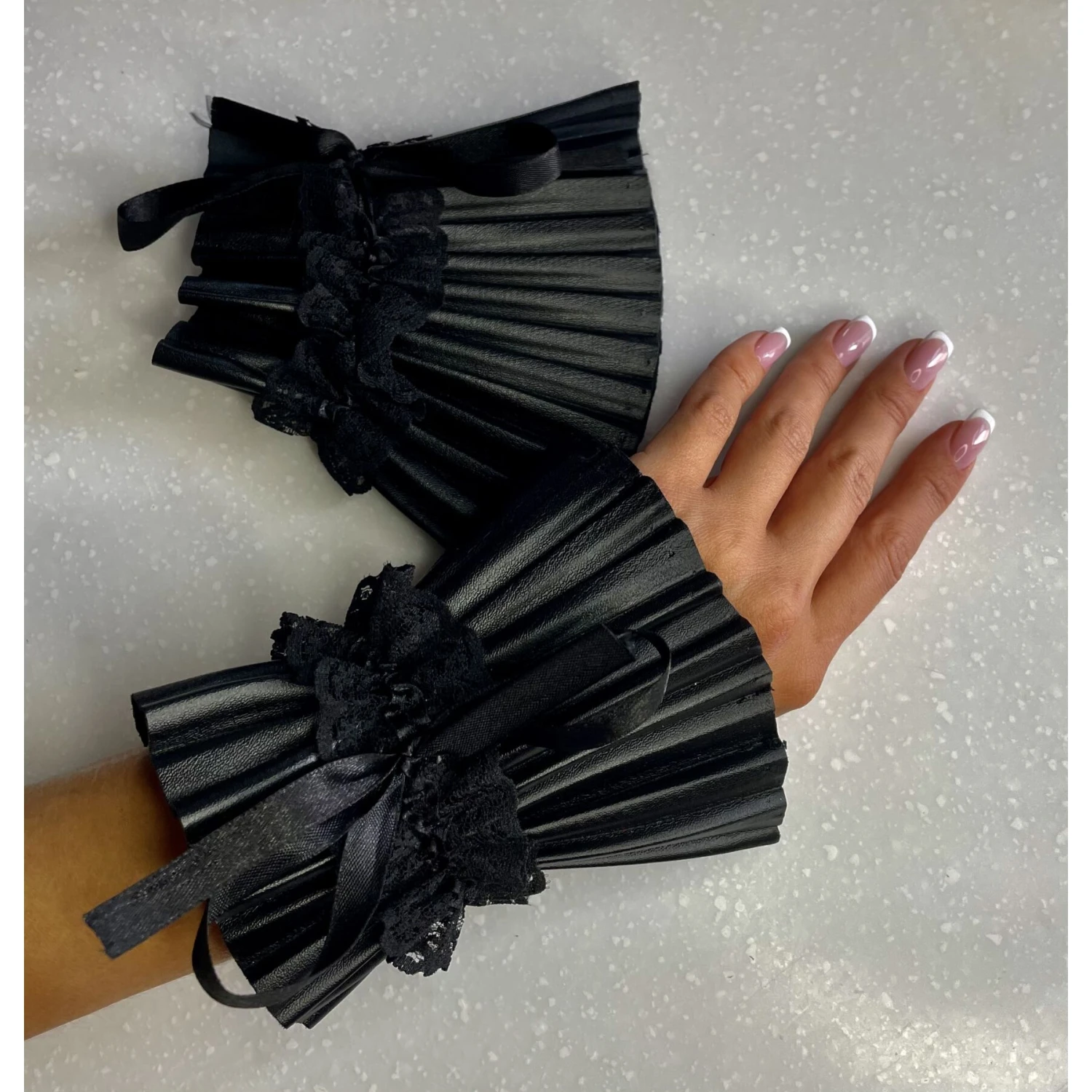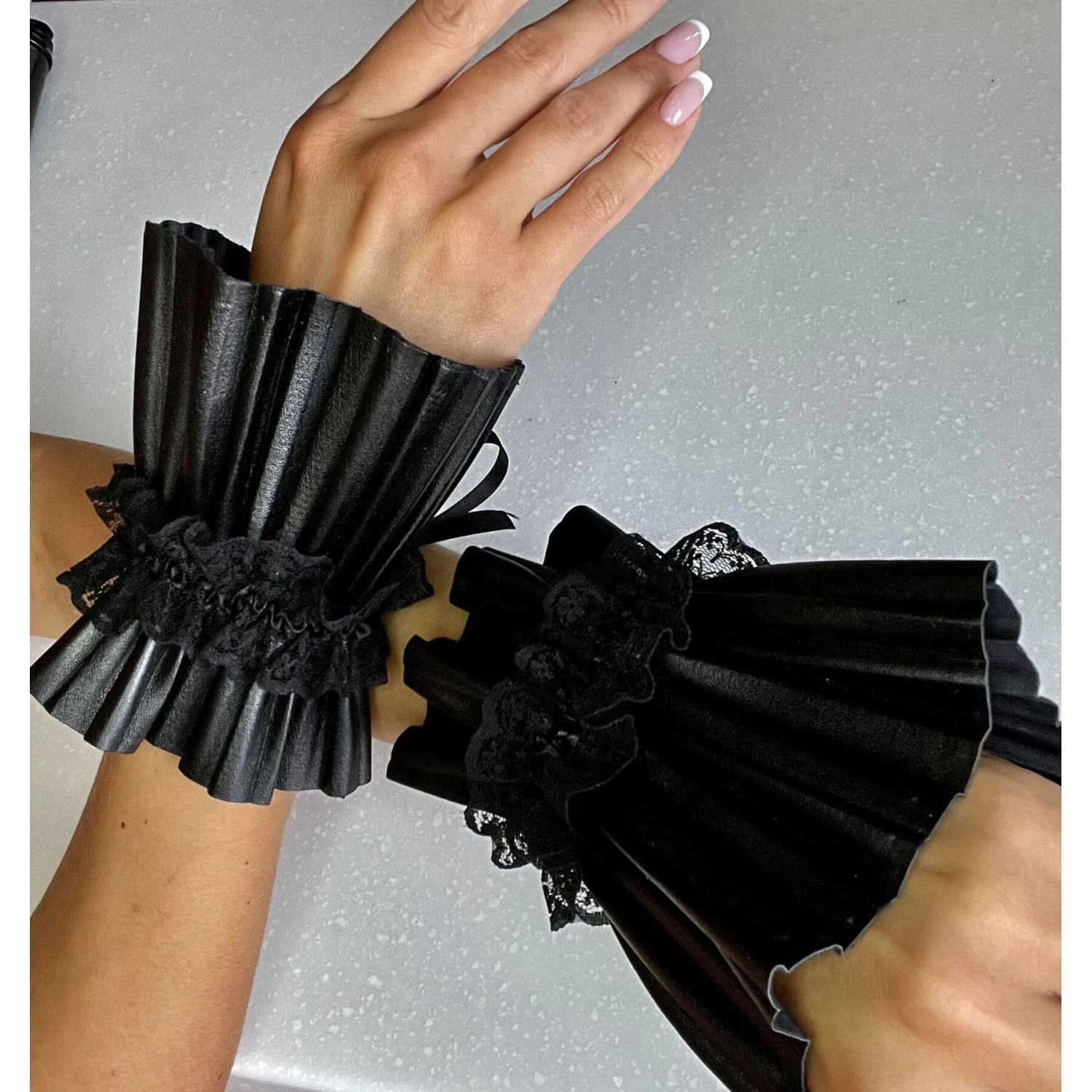 Если вы ищете изящный и необычный аксессуар, который станет элегантным дополнением вашего наряда, тогда советуем купить плиссированные манжеты-наручники из кожзама. Шикарные манжеты с атласными лентами и ажурным декором, станут очень интересным акцентом вашего образа, добавив в него капельку аристократизма.