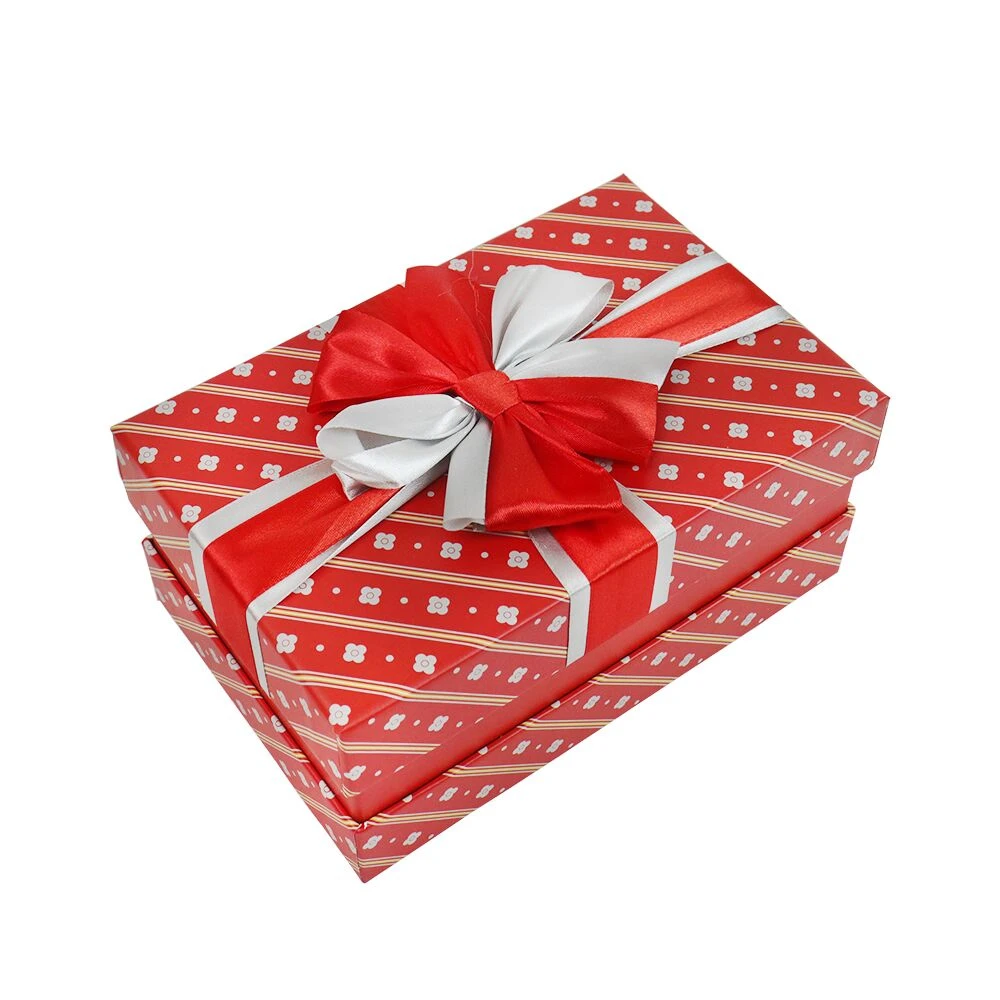 Подарочная коробка с бантом красно-белая, S - 20,5х13,5х9,5 см