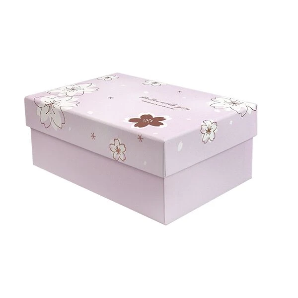Подарочная коробка с цветами розовая, S - 22.5х15.5х9 cм