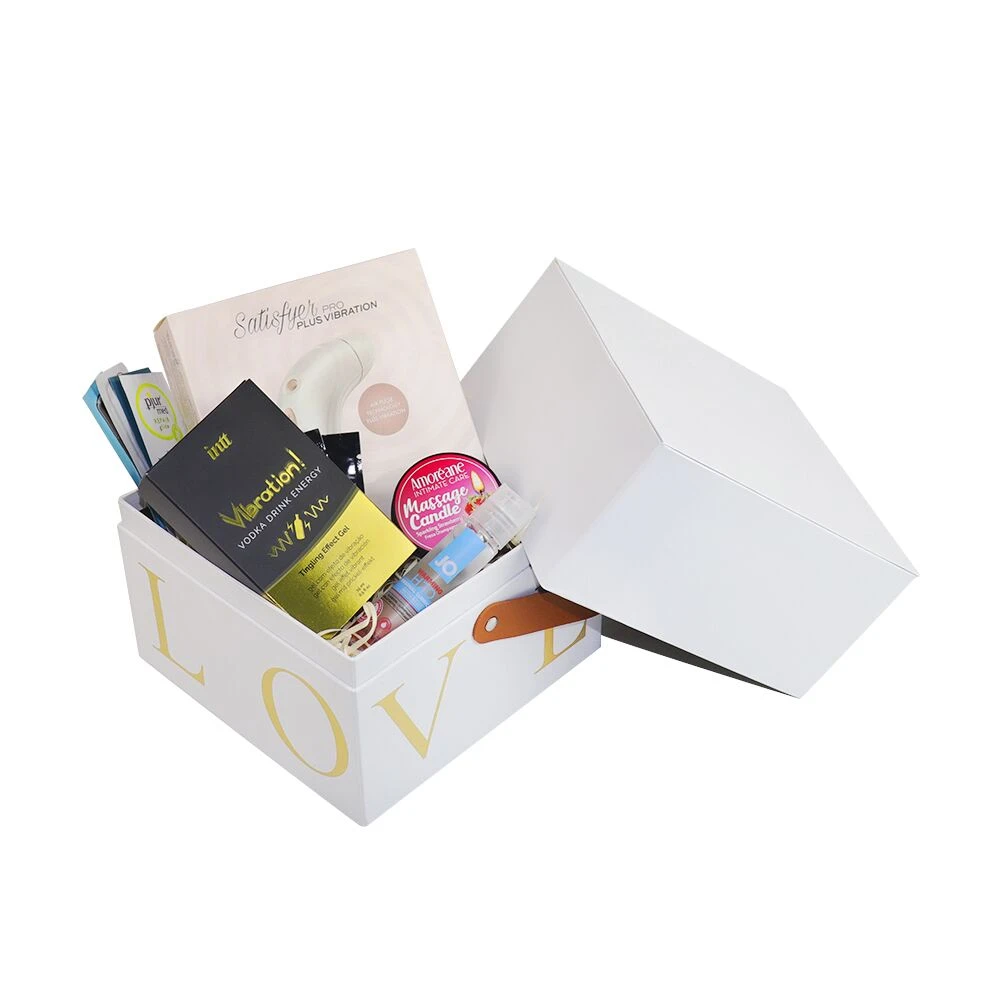 Останавливая выбор на наших подарочных наборах, вы экономите не только время, но и получаете комплект секс-игрушек, смазок и других товаров на 15% дешевле. Наши наборы будут радовать вас и вашего партнера не один вечер, превращая вашу любовную игру в незабываемое приключение. Упакованный в элегантную белую коробку из плотного картона с романтичной надписью “LOVE” и ручкой из искусственной кожи, набор станет шикарным подарком по любому поводу.