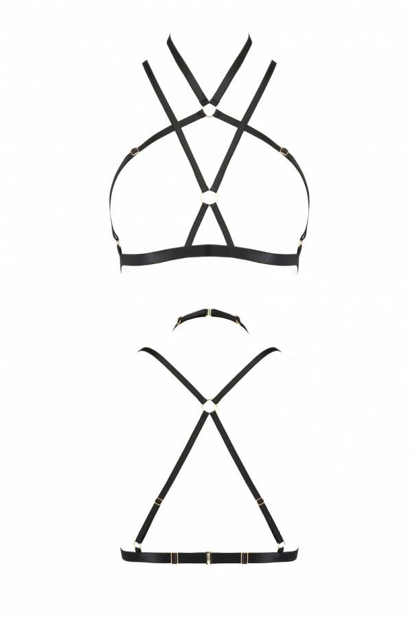 Портупея-стрепы, которую можно надеть на любую рубашку, футболку или платье (а при желании — как самостоятельный аксессуар) — мастхев гардероба любой современной девушки. Тем более, если это такая роскошная портупея, как эта. Она охватывает грудь, делая ее визуально пышнее и более приподнятой, и красиво оформляет линию декольте. Все ремни можно легко подрегулировать для идеальной посадки.