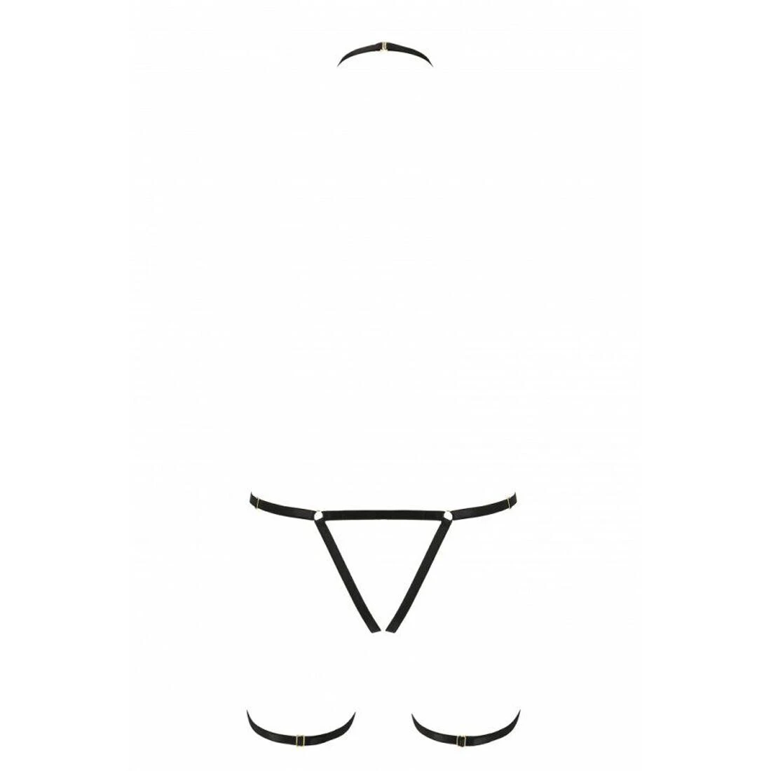 В данной модели чувственно сочетаются три разных элемента: чокер, ремень и подвязки. Сразу три украшения в одном! И каждое вы сможете отрегулировать по собственной фигуре. Соблазнительный дизайн акцентирует внимание на нижней части тела, при этом совершенно не мешает даже самым жарким ласкам. Не снимайте эту красоту даже во время горячей близости!