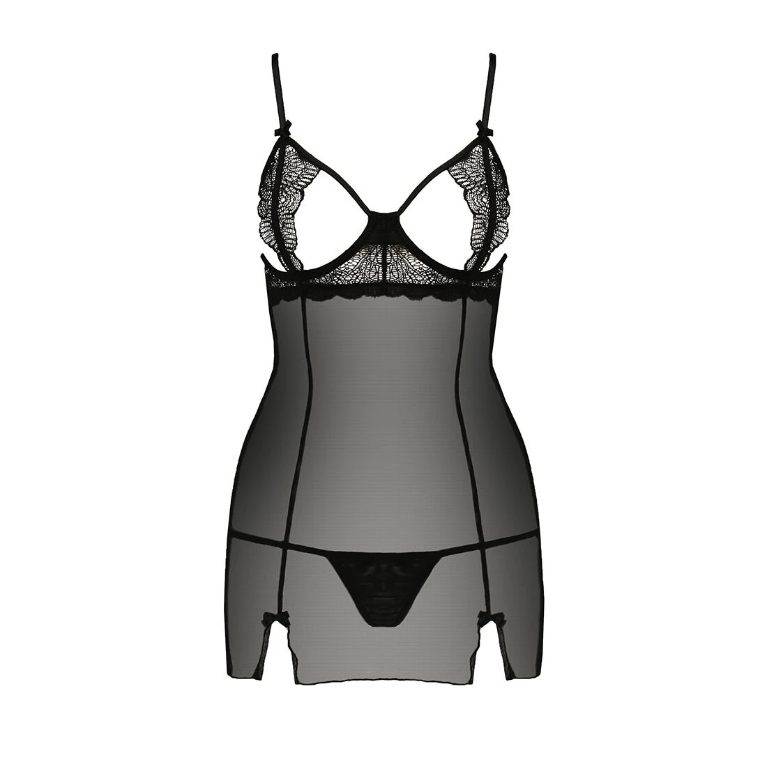 Красивая линия груди, волнующая ложбинка и больше открывающее, нежели скрывающее, кружево — в этой модели есть все для соблазнения! Прозрачный мягкий материал окутывает тело сексуальной дымкой, а мини-стринги так и хочется поскорее снять.. Такой набор вдохновит на эксперименты и самые смелые игры. Просто решитесь купить его и раскрыть внутреннюю сексуальность!