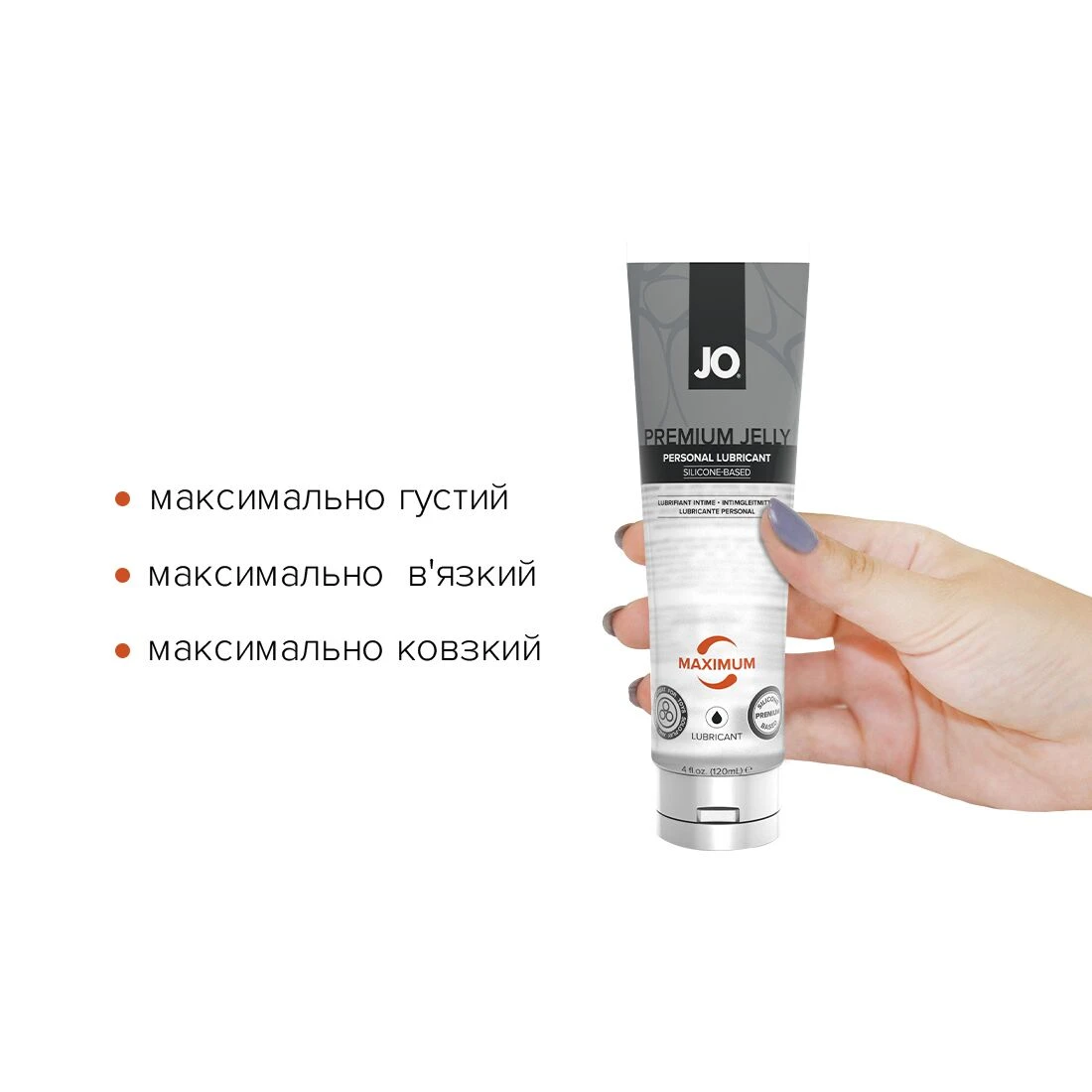 Представляем JO® PREMIUM JELLY — MAXIMUM (максимальная вязкость) из новой коллекции интимных лубрикантов на основе силикона. Созданное, чтобы, тая на теле, из густой превращаться в почти не осязаемую и придающую шелковистое и гладкое скольжение смазку, это средство обеспечивает уникальные тактильные ощущения, которые должен испытать каждый. JO® PREMIUM JELLY — MAXIMUM не содержит консервантов и изготовлен с использованием силикона только высочайшего качества. Наслаждайтесь длительным комфортом, подаренным этим средством, которое не высыхает и не создает ощущения липкости.