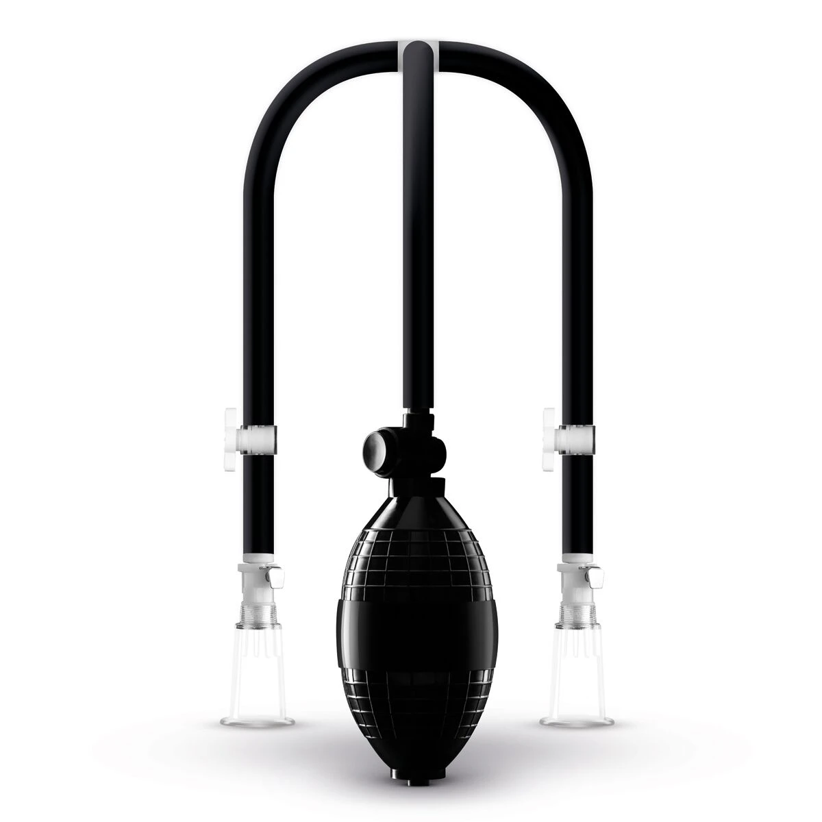 В комплекте: 2 компактные стеклянные чаши, резиновые упругие шланги и груша для ручного откачивания с кнопочкой быстрой деактивации и сброса давления. Вы сами регулируете интенсивность вакуума. Время наслаждения не должно превышать 10 минут.