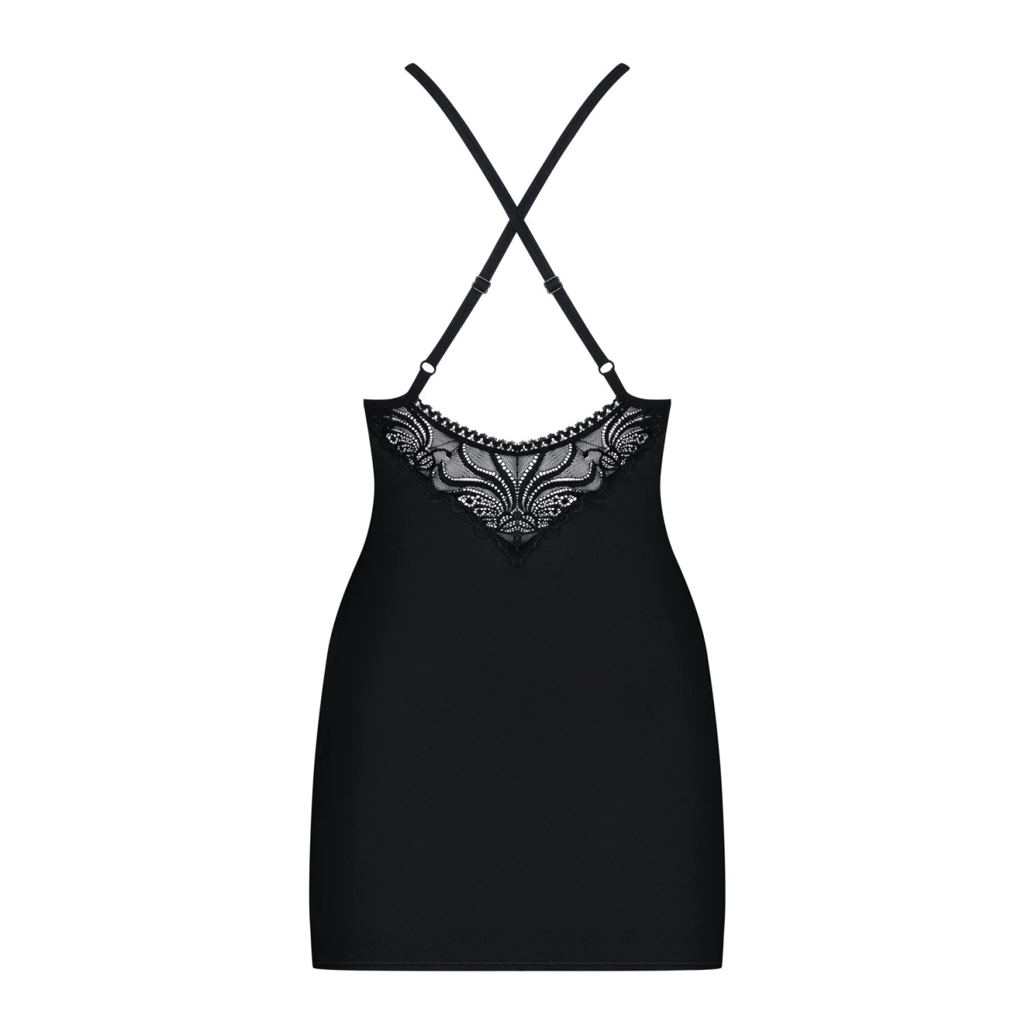 Сатиновый комплект для сна с кружевом Obsessive 828-CHE-1 состоит из сорочки и стрингов. Упакован комплект в симпатичную коробку.