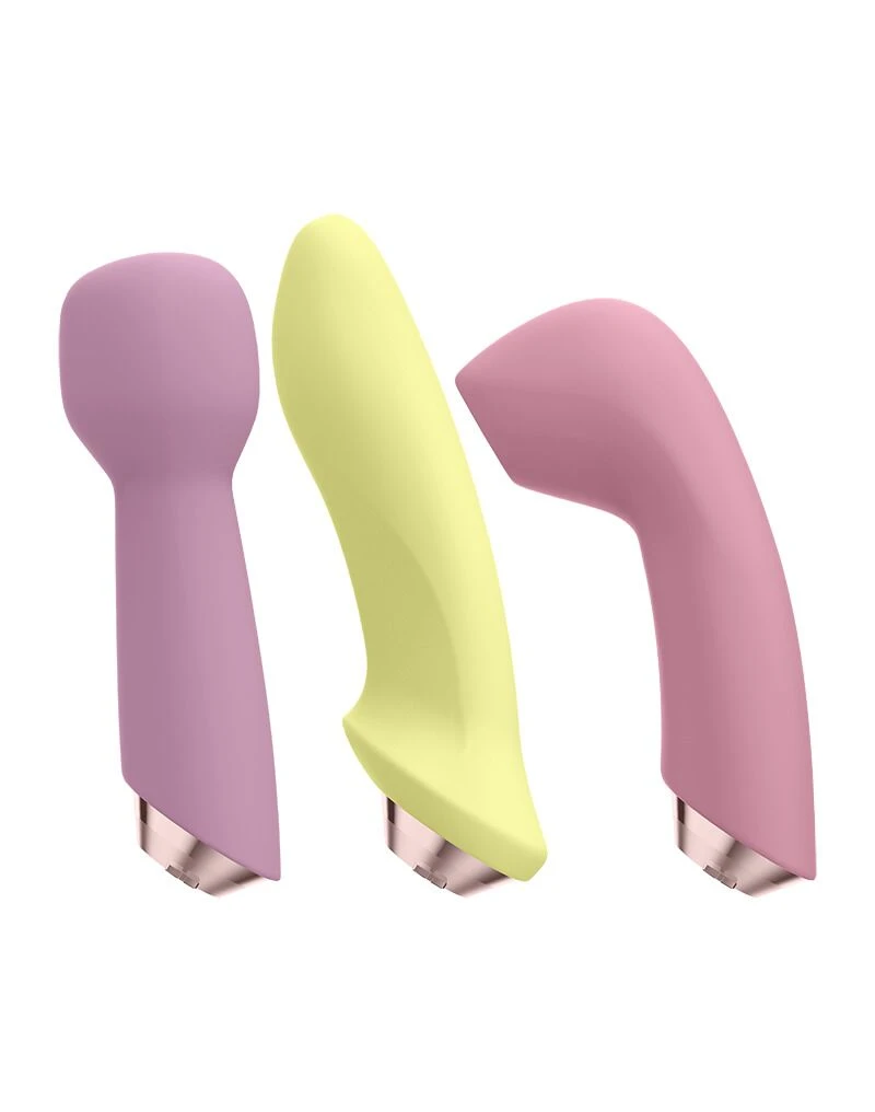 Набор секс-игрушек можно начать использовать с маленького и яркого массажера, который подходит для стимуляции эрогенных зон, разбросанных по всему вашему телу. После того, как вы разогрелись от этого нежного массажа, попробуйте мягкую, клиторальную стимуляцию с помощью воздушных волн и вакуума, что ощущается, как нежное прикосновение влажного языка.