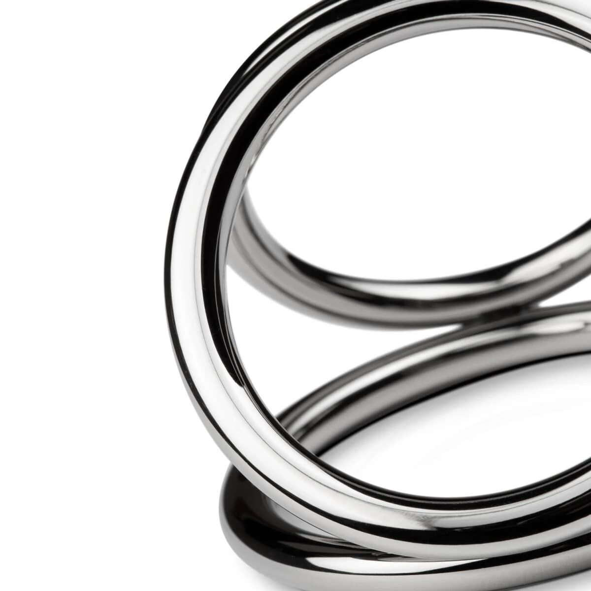 Тройное эрекционное кольцо Sinner Gear Unbendable - Triad Chamber Metal Cock and Ball Ring можно использовать с любой смазкой. Самое маленькое кольцо предназначено для члена, два больших — для яичек. Поставляется в мягком бархатном чехле.