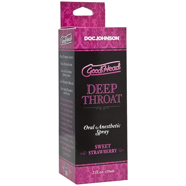 Восхитительный минет — что может быть лучше для мужчины? Только восхитительный глубокий минет с использованием специального спрея, который сведет на “нет” рвотный рефлекс и поможет партнерше заглотить даже самый большой пенис целиком! Рекомендуем купить спрей для минета Doc Johnson GoodHead Deep Throat Spray – Sweet Strawberry (59 мл), приятный на вкус и отлично снижающий чувствительность.