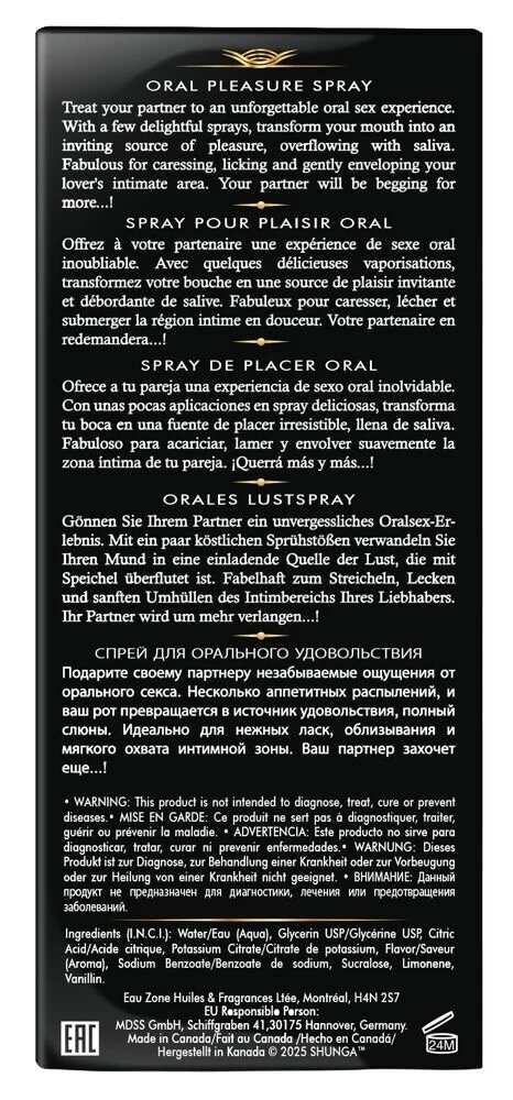 Распылите небольшое количество спрея в полость рта перед или во время оральных ласк.
