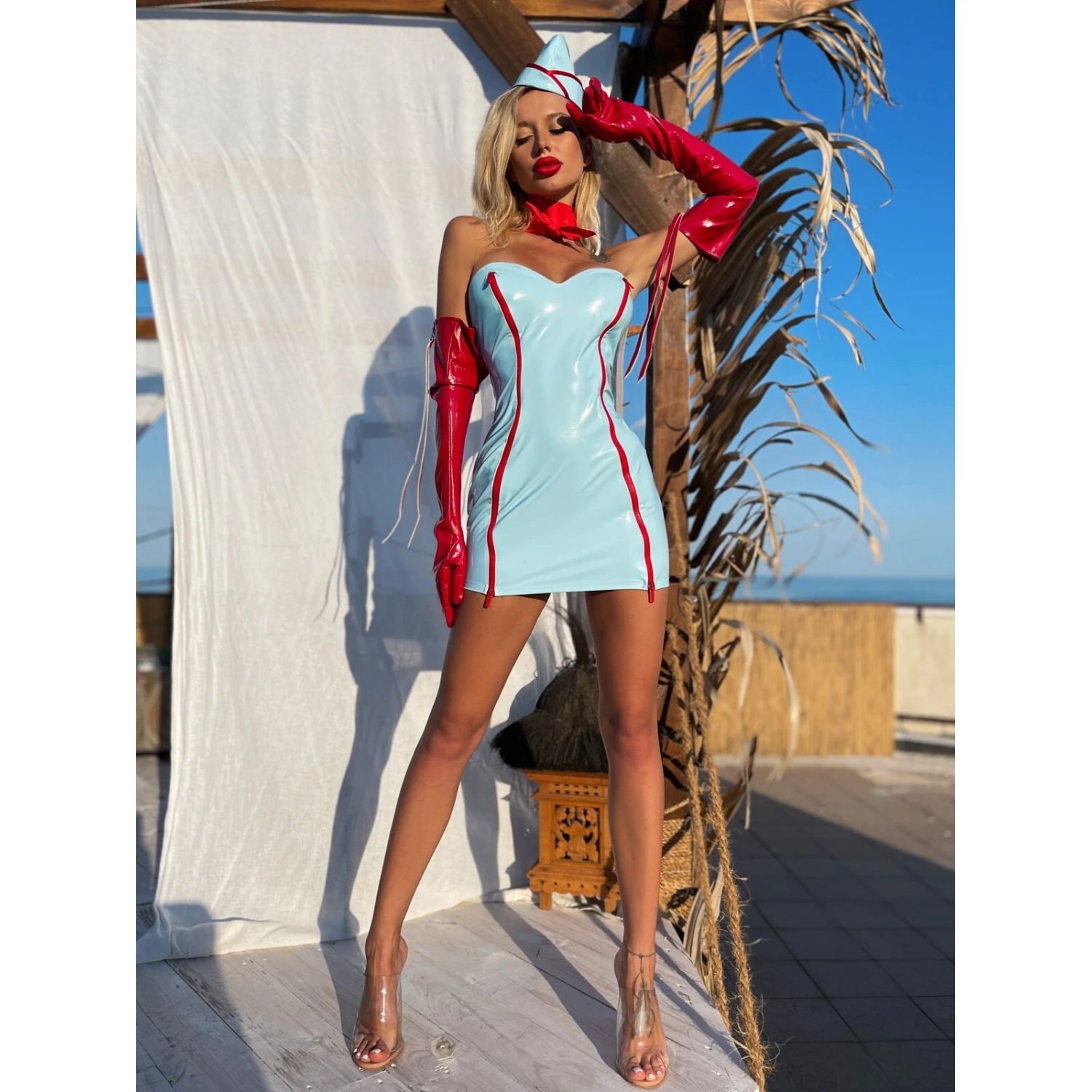 Отправляйтесь вместе с вашим партнером в полет на седьмое небо удовольствия, купите ролевой костюм стюардессы “Сногсшибательная Жанна”. Бело-красный тандем из мини-платья с мокрым эффектом, шейного платка и пилотки станет идеальным комплектом для незабываемого путешествия в мир страсти.