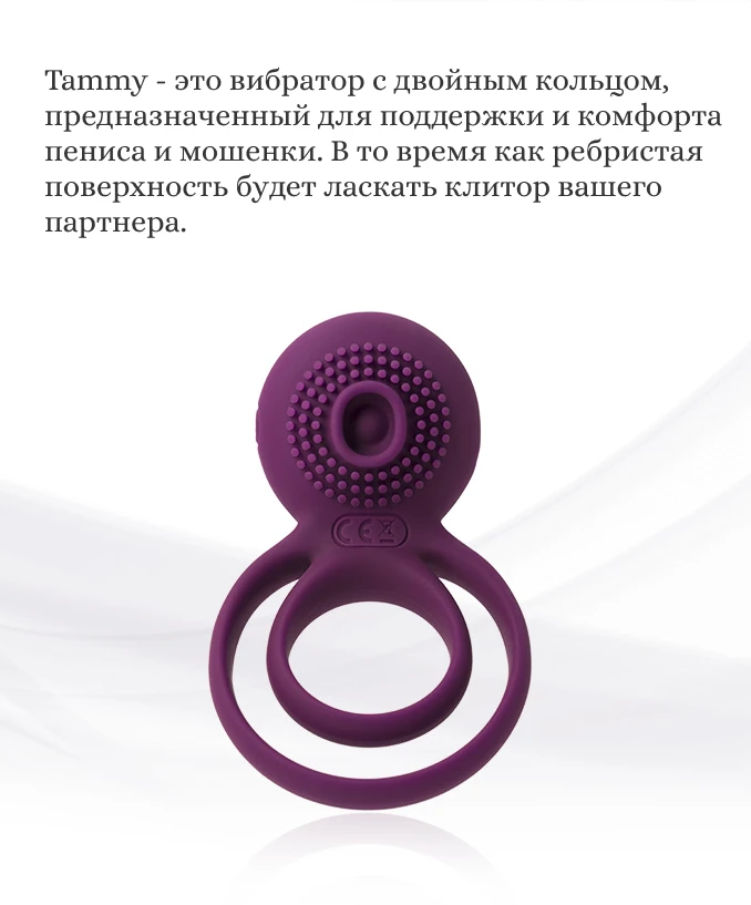 Вибрирующее двойное эрекционное кольцо Svakom Tammy в чудесном фиолетовом цвете — любимчик многих пар. Вы удивитесь, насколько длительным может быть половой акт вместе с Tammy. Кольцо также интересно попробовать в роли стимулятора для клитора, сосков или какой-нибудь ещё эрогенной зоны.
