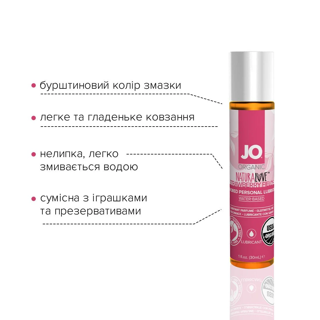 Лубрикант на водной основе System JO NATURALOVE - STRAWBERRY, «Клубничные поля»- ароматизированный интимный лубрикант, созданный для получения большего удовольствия от прелюдии и интимной близости. Это средство с гордостью может похвастаться содержанием более чем 95 % сертифицированных органических ингредиентов. Консервант из ромашки придает приятную янтарную окраску, а агава - гладкое скольжение.