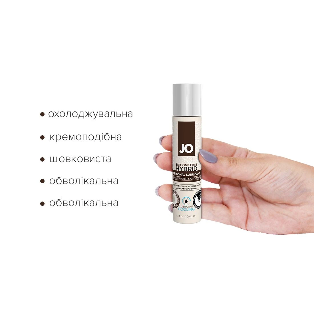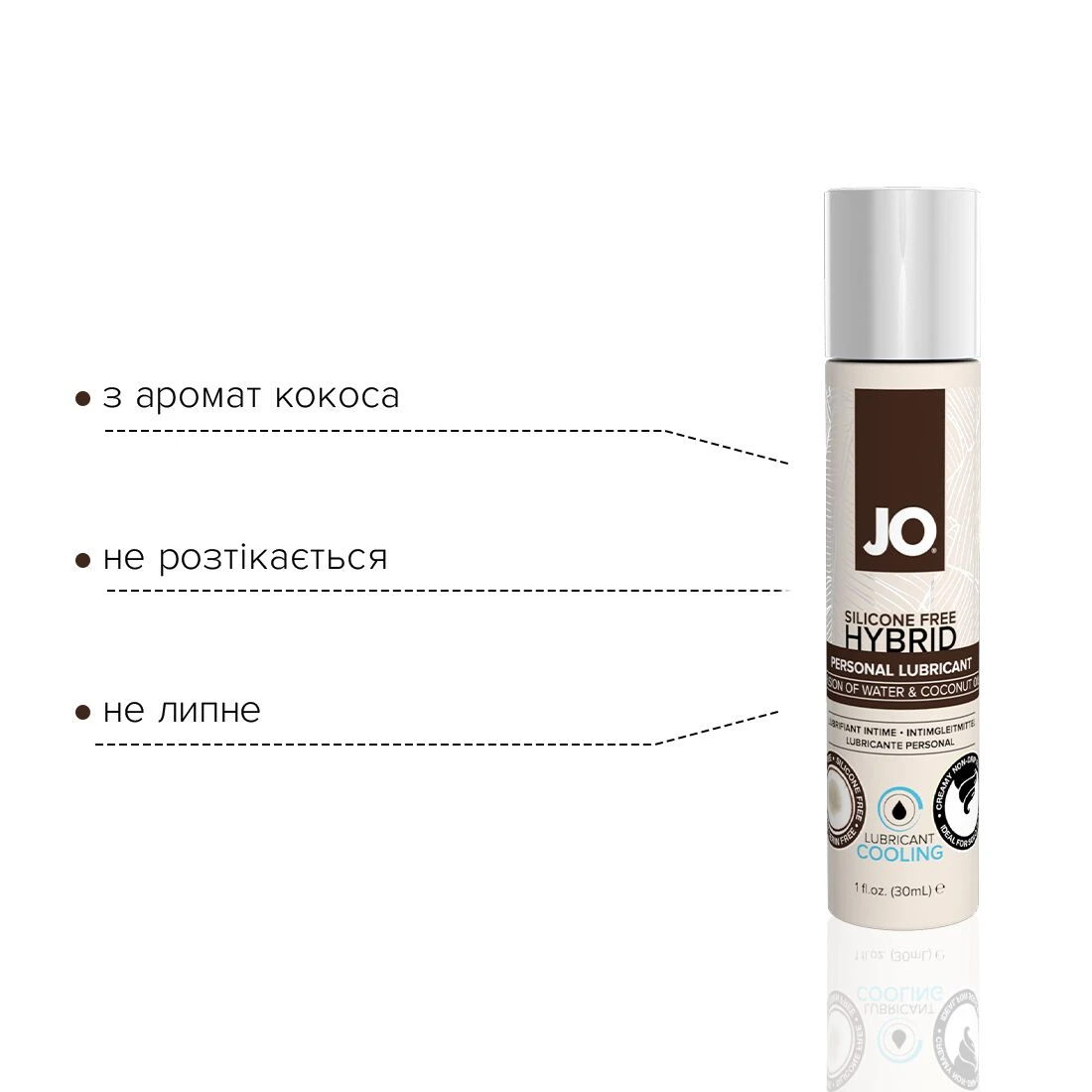 Лубрикант на комбинированной основе System JO SILICONE FREE HYBRID - COOLING с охлаждающим эффектом не содержащее силикона средство JO® HYBRID. Это интимный лубрикант, используемый в качестве дополнения к естественной смазке. Нежная гладкая текстура и изысканный аромат кокоса отлично дополнят атмосферу интимности и уединения. К тому же этот роскошный кремообразный белый лубрикант отлично подходит для трех видов ласк: самостоятельных, ласк в паре и/или с применением силиконовых игрушек.