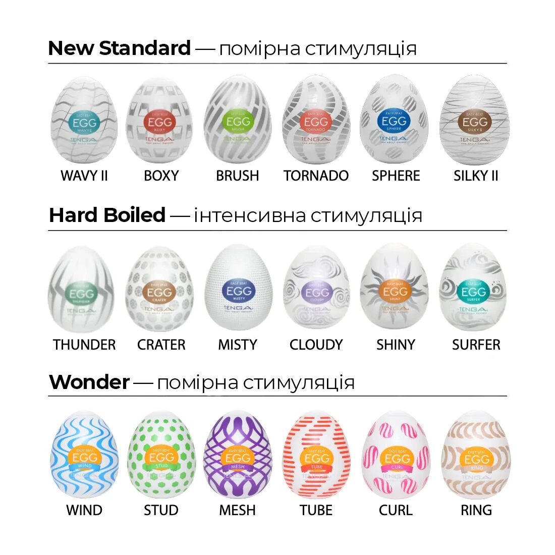 В набор Tenga Egg Hard Boild Pack входят следующие виды яиц: