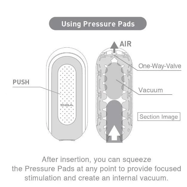 Игрушка имеет 5 режимов вибрации с простым управлением, начиная от самой низкой до просто неистовой по силе. Но, разумеется, это лишь дополнение к уникальному внутреннему рельефу мастурбатора, который был разработан с учетом анатомии пениса и расположения его самых чувствительных зон, а также, фирменной способности мастурбаторов серии FLIP - создавать вакуум внутри игрушки, имитируя ощущения как во время настоящего минета.