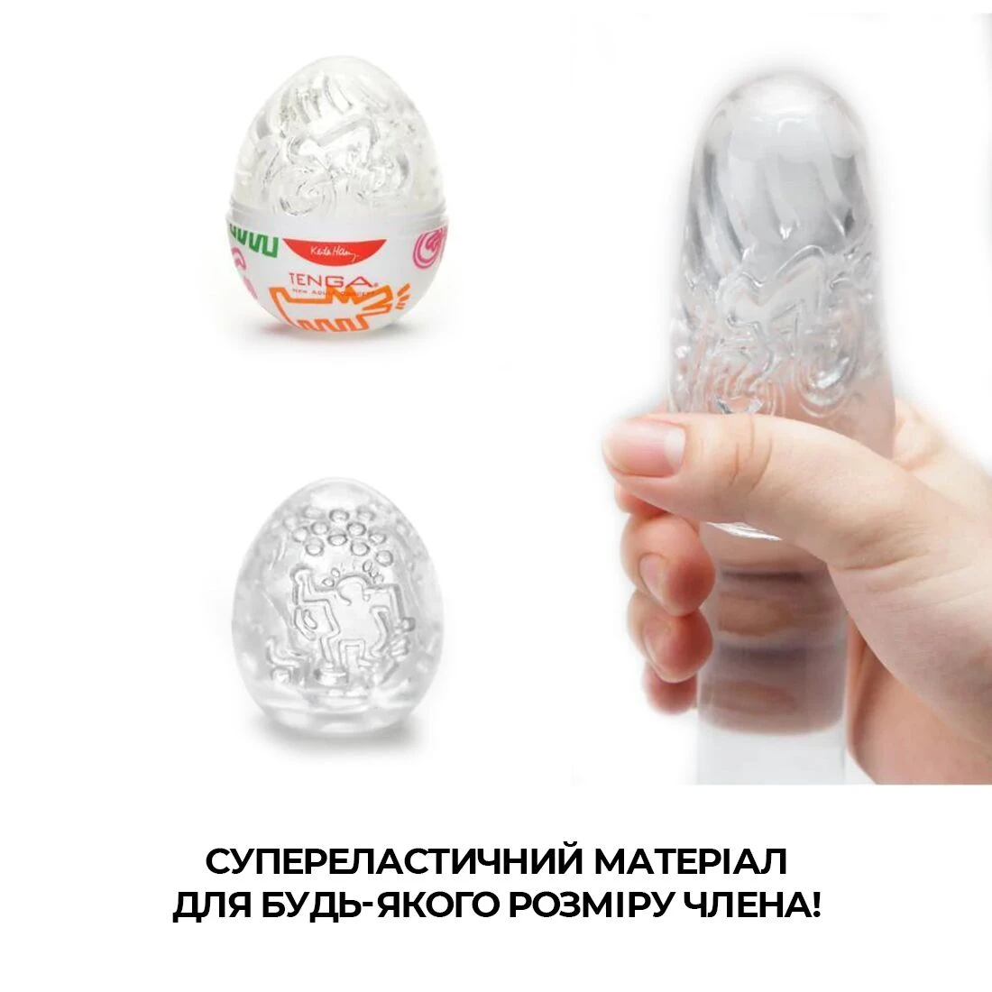 Tenga&Keith Haring Egg Dance - мастурбатор для мужчин, разработанный японской компанией Tenga. Изготовлен он из очень мягкого, нежного и эластичного эластомера. За счет этого материала Tenga Egg вытягиваются до 30 см в длину и до 20 см в ширину, но при этом могут уместиться в кулаке и спрятаться в кармане