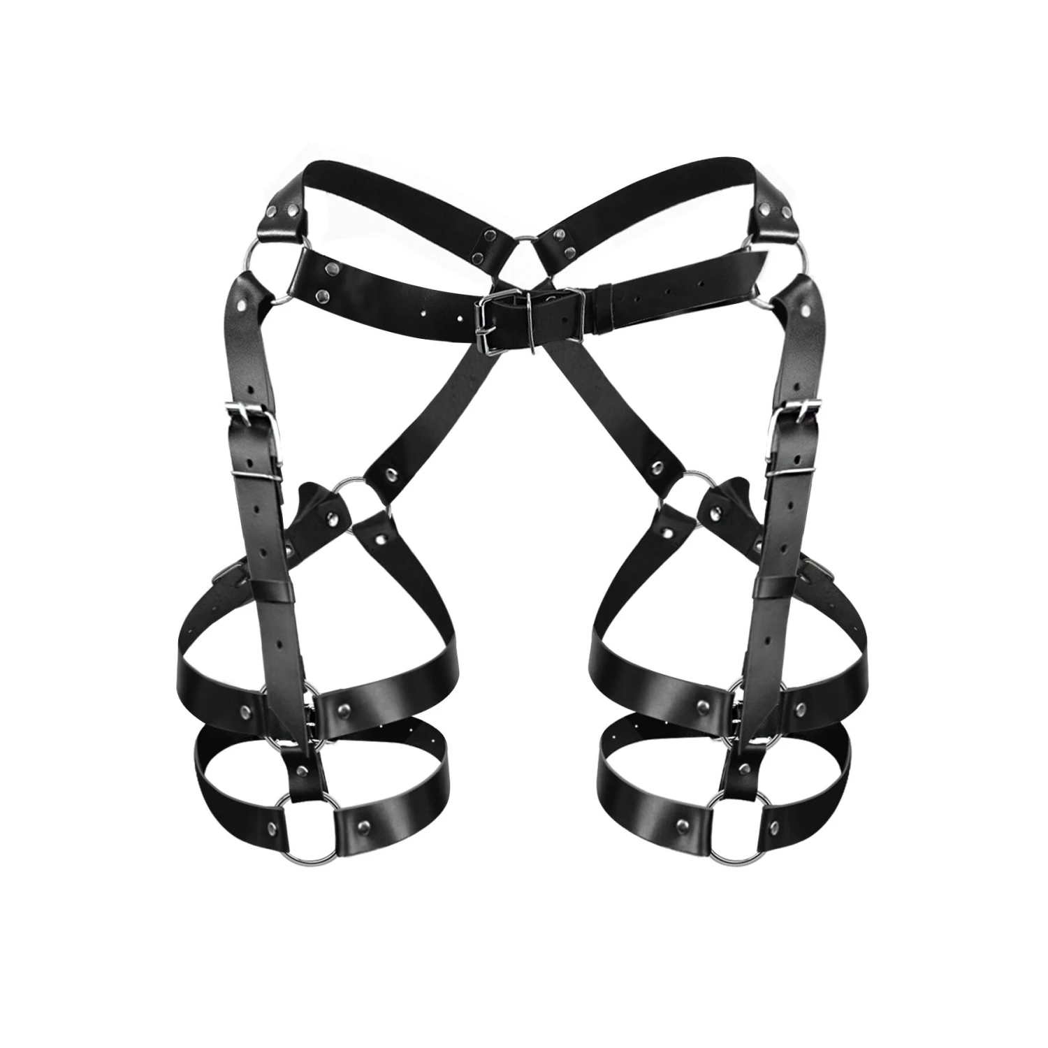 Art of Sex - Claire L-2XL - Чорні гартери з натуральної шкіри