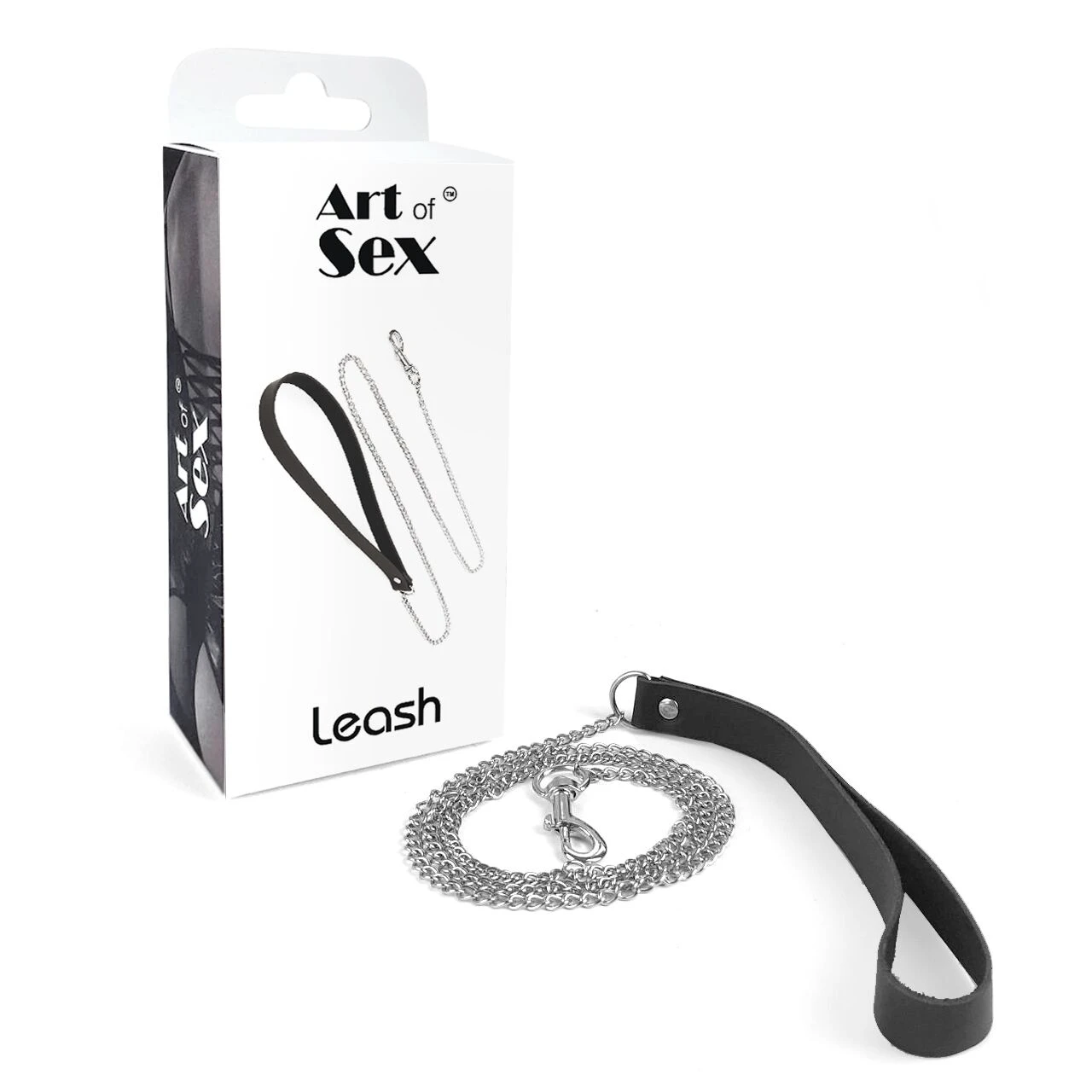 Повідець із натуральної шкіри з металевим ланцюжком Art of Sex — Leash, Чорний — класичний варіант, який вдало комбінується з будь-якими інтимними іграшками та БДСМ-атрибутикою. Комфортний та надійний у використанні, за бажанням з’єднується з будь-яким нашийником. Повідець має достатню довжину, щоб ви без проблем могли керувати своїм партнером, не завдаючи йому шкоди.
