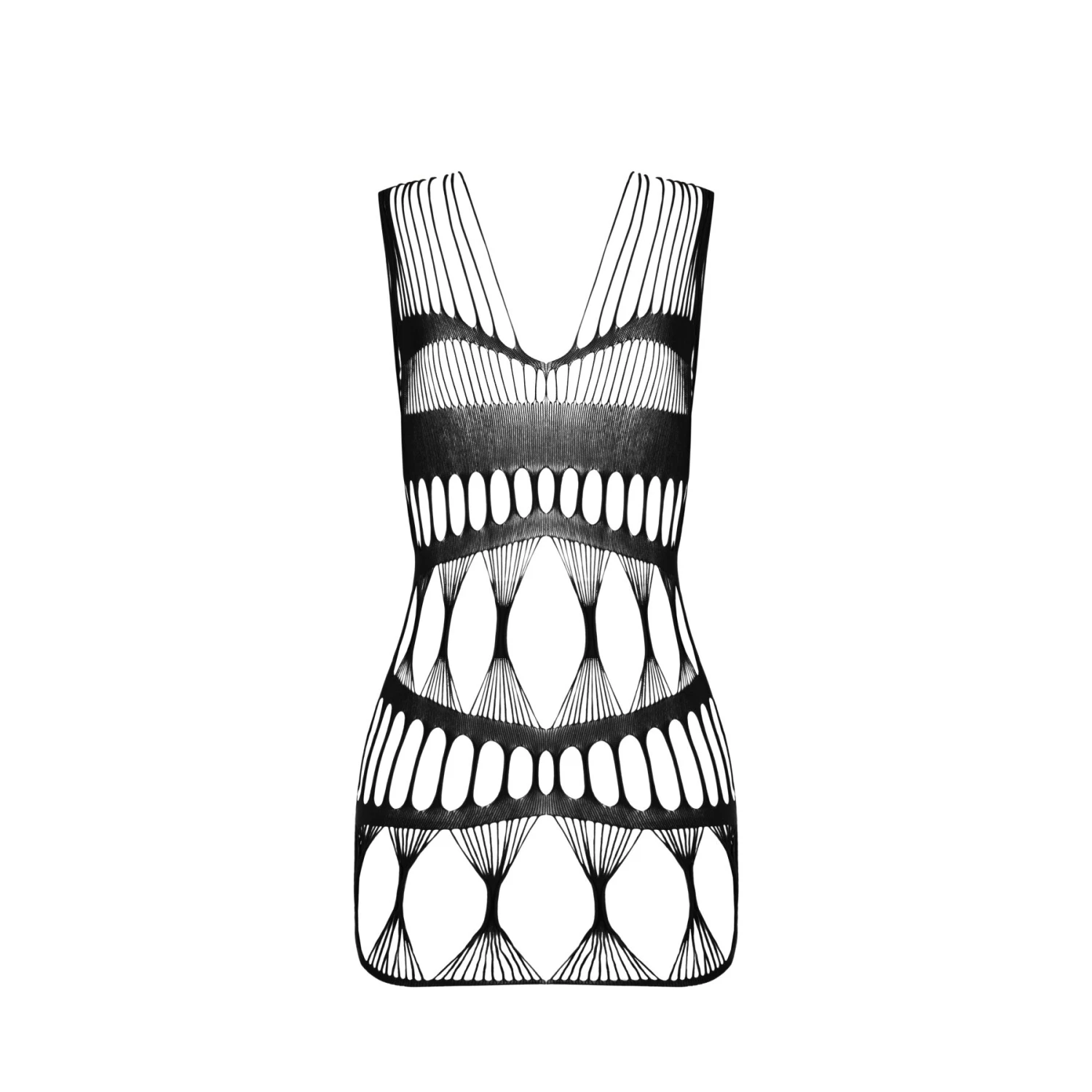 Зухвалий бодістокінг-сукня Passion BS089 black ідеально сідає по фігурі та створює не просто хвилювальний, а буквально заворожливий силует. Вертикальне плетіння у формі пісочного годинника ніжно обволікає тіло і вигідно розставляє хвилювальні акценти. Декілька тонких ліній прикрашають груди, а глибоке декольте й щільна вставка під ліфом надають їй пишноти. Це сміливе вбрання створене для того, щоб дивувати. Доповніть мінісукню панчохами, відповідними стрінгами та туфлями на підборах, щоб підвищити градус романтичної вечері. Максимально відкритий бодістокінг дасть вам змогу легко перейти до дій.