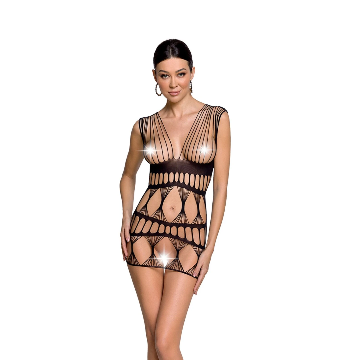 Зачаруйте вашого партнера максимально ефектним способом, купіть бодістокінг-сукню Passion BS089 black. Це не просто безмежно відверте міні, плетіння якого нагадує павутину, це тонкі нитки, які ефектно підкреслюють жіночні форми.