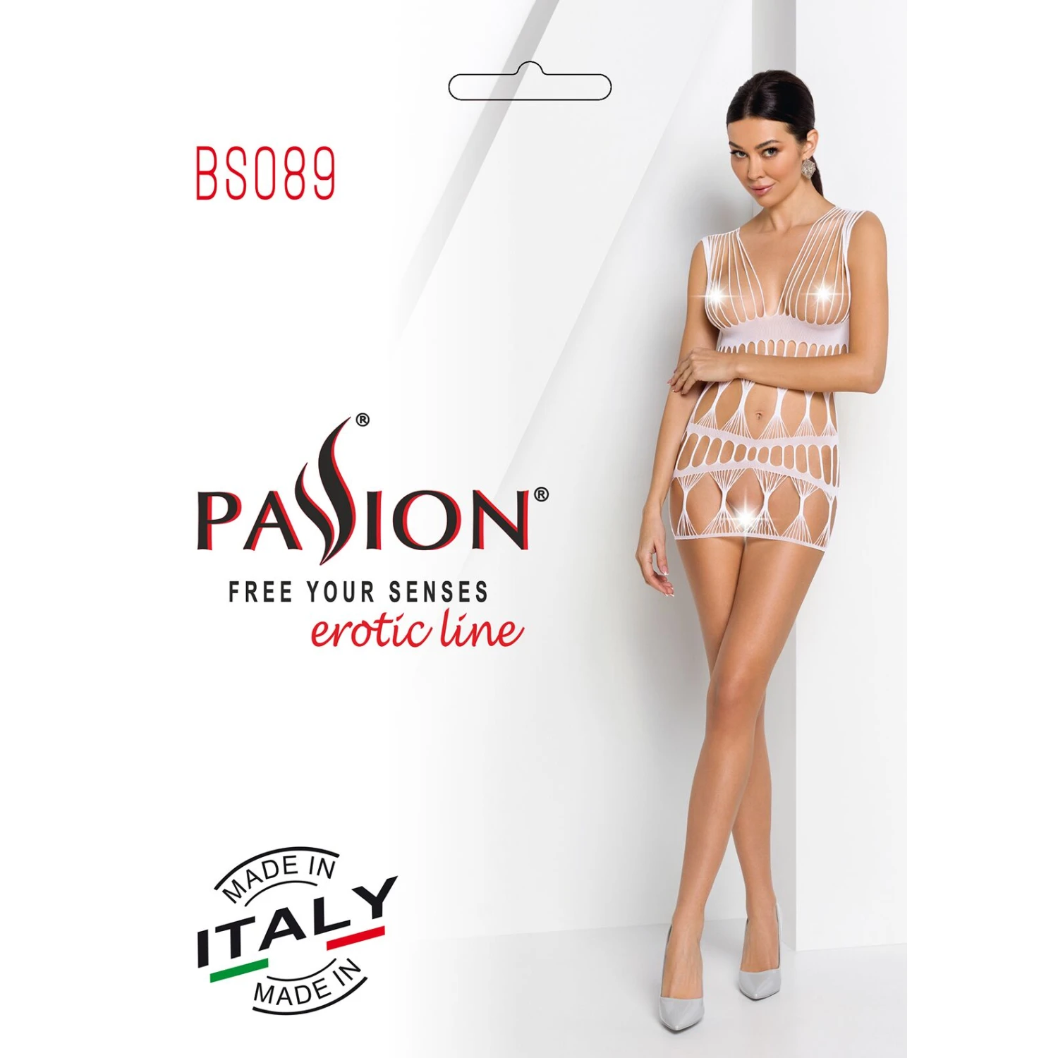 Зачаруйте вашого партнера максимально ефектним способом, купіть бодістокінг-сукню Passion BS089 white. Це не просто безмежно відверте міні, плетіння якого нагадує павутину, це тонкі нитки, які ефектно підкреслюють жіночні форми.