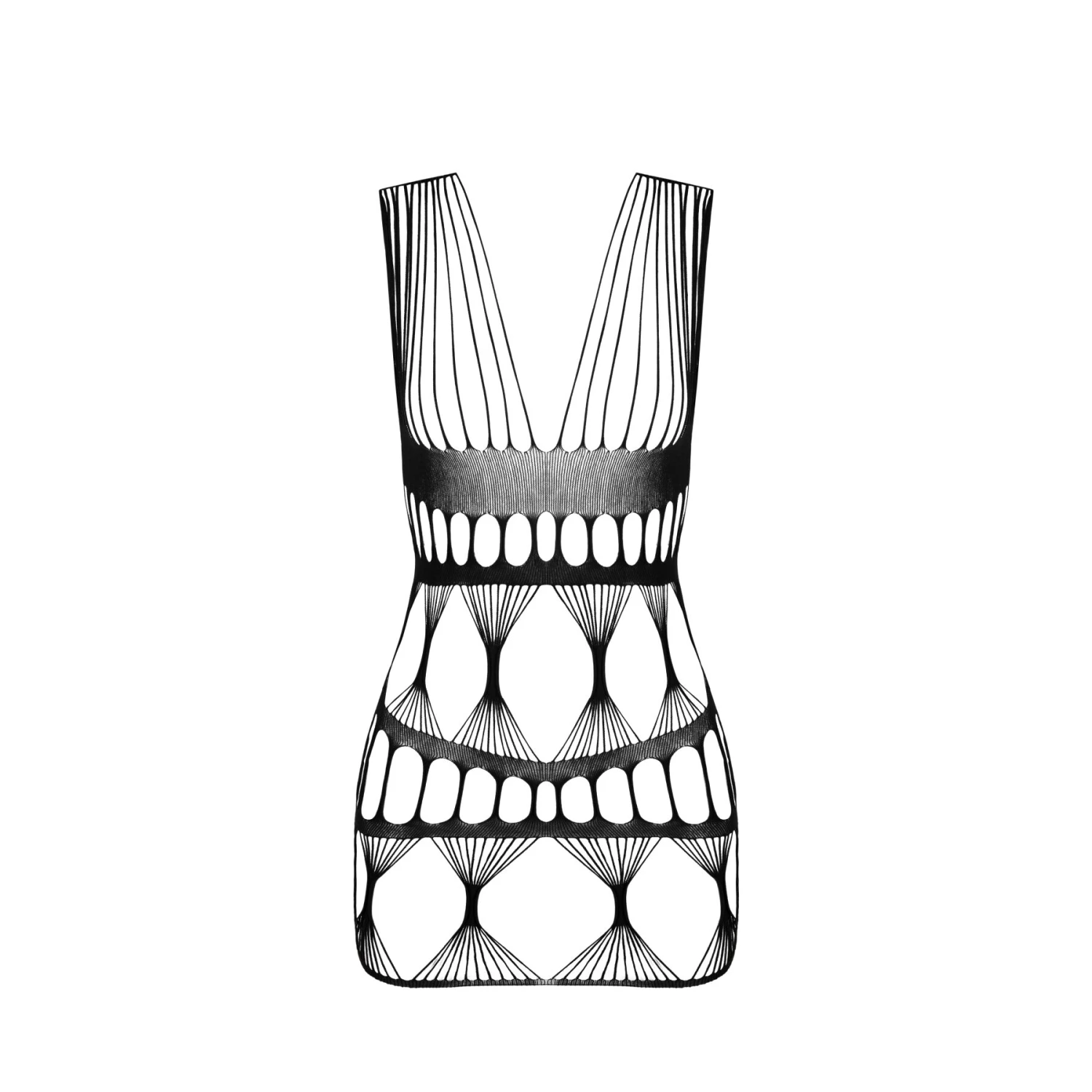 Зухвалий бодістокінг-сукня Passion BS089 white ідеально сідає по фігурі та створює не просто хвилювальний, а буквально заворожливий силует. Вертикальне плетіння у формі пісочного годинника ніжно обволікає тіло і вигідно розставляє хвилювальні акценти. Декілька тонких ліній прикрашають груди, а глибоке декольте й щільна вставка під ліфом надають їй пишноти. Це сміливе вбрання створене для того, щоб дивувати. Доповніть мінісукню панчохами, відповідними стрінгами та туфлями на підборах, щоб підвищити градус романтичної вечері. Максимально відкритий бодістокінг дасть вам змогу легко перейти до дій.
