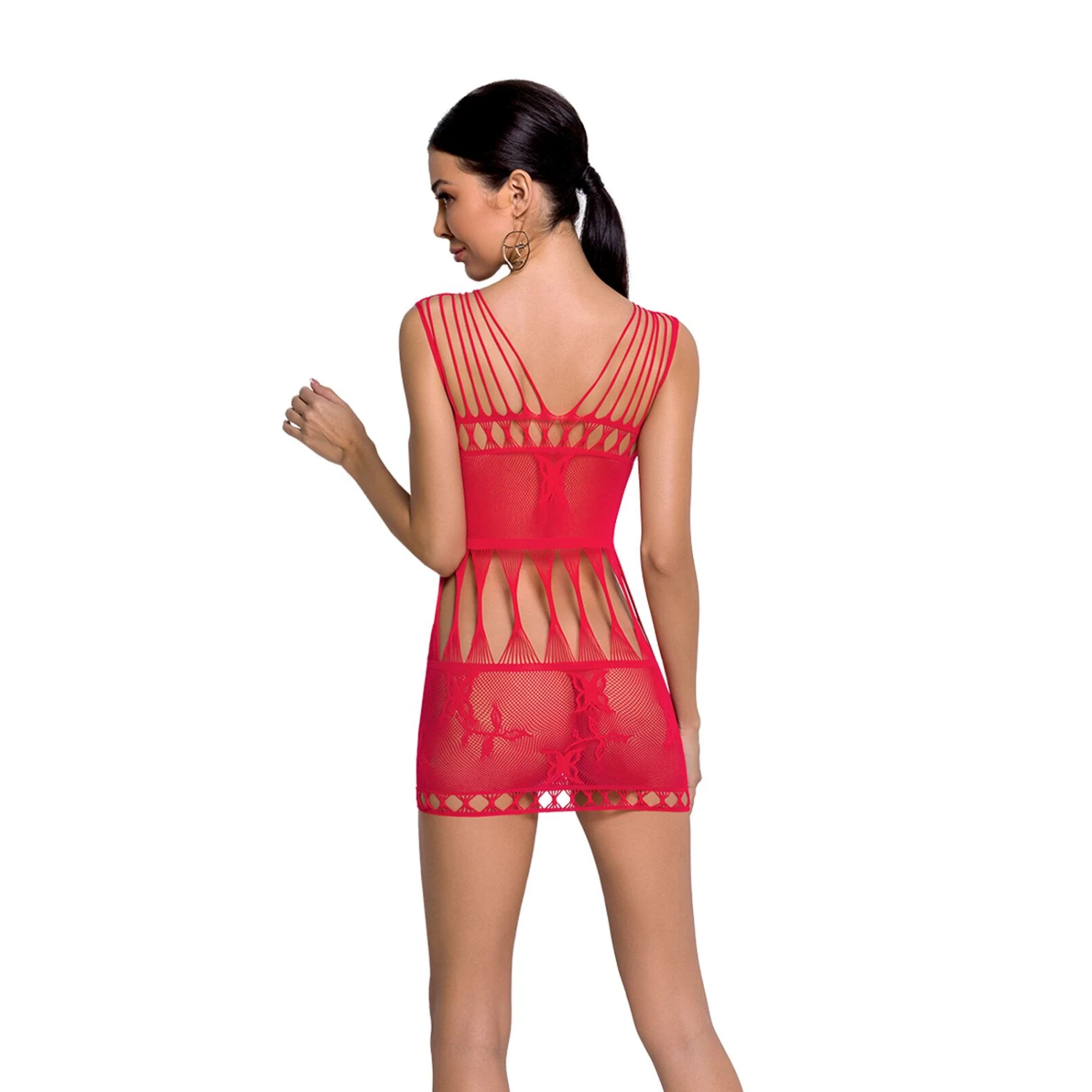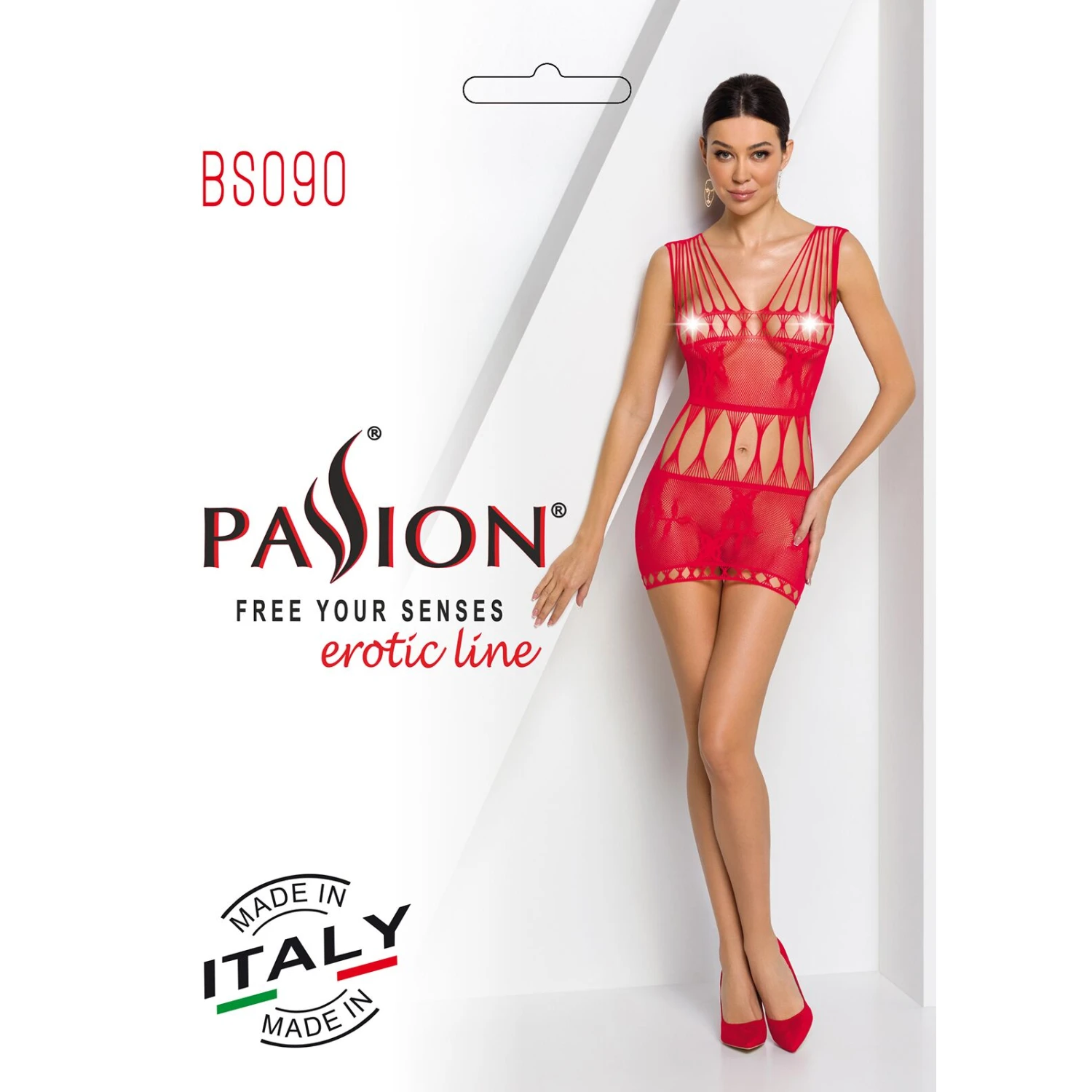 Витончений бодістокінг — мінісукня з метеликами Passion BS090 завдяки переходам між щільних плетінь та візерунків із тонких ниток візуально звужує талію та додає пишноти стегнам. Зухвало-прозоре боді демонструє всю красу ваших апетитних форм з акцентом на груди. Це сміливе вбрання створене для того, щоб дивувати. Доповніть мінісукню панчохами, відповідними стрінгами та туфлями на підборах, щоб підвищити градус романтичної вечері. Сукня ідеально підійде для відвертої фотосесії в стилі ню.