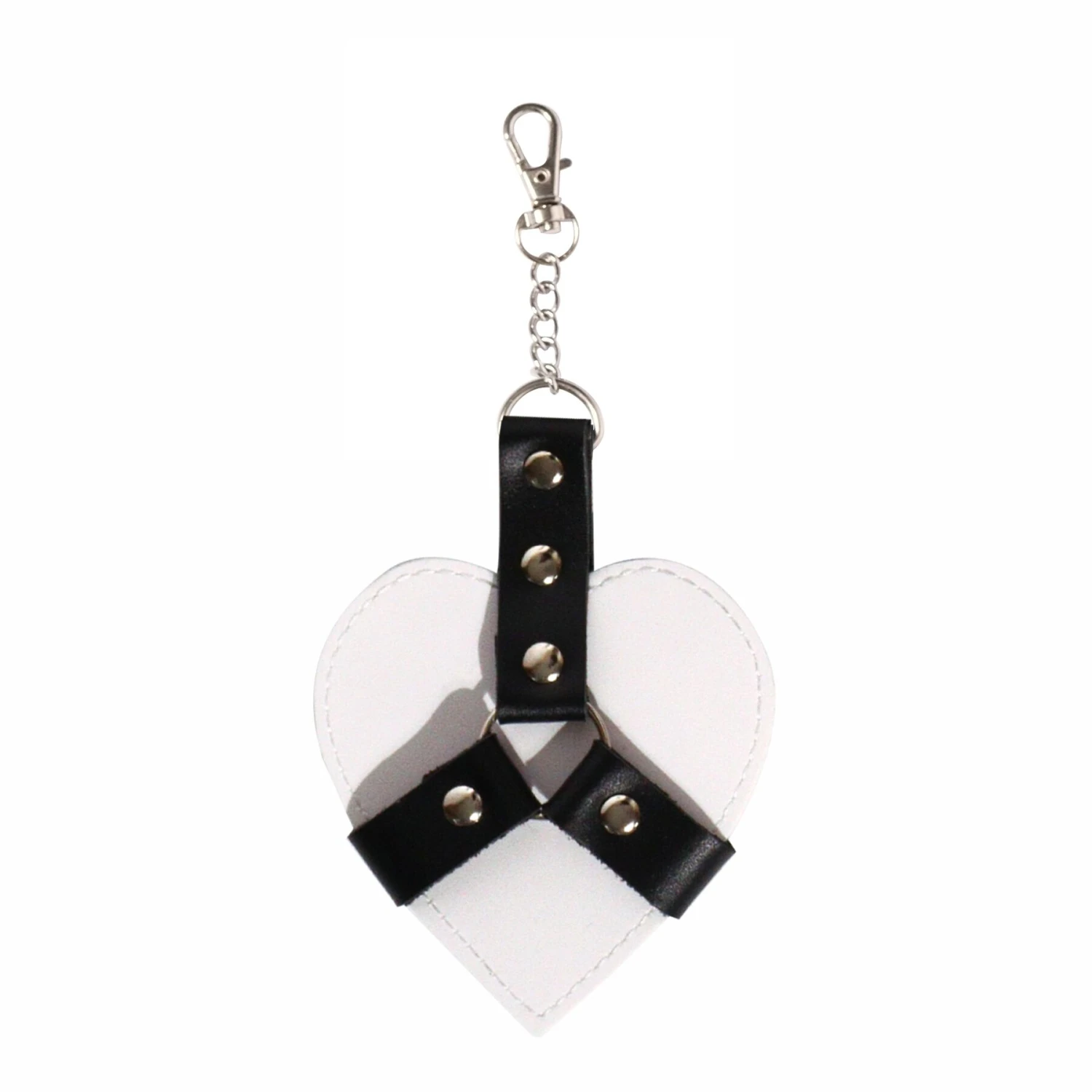 Цей брелок може стати цікавим доповненням вашого образу і яскравим аксесуаром для любителів оригінального дизайну. Виконаний у формі серця, він прикрашений мініатюрними портупеями, які надають виробу зухвалий вигляд.
