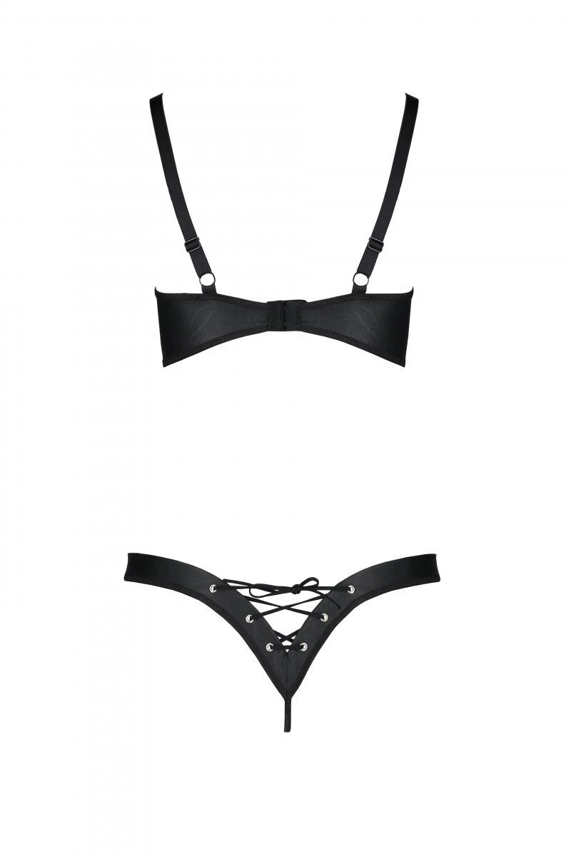 Наповніть ваші стосунки з партнером пристрастю та пікантністю, купіть комплект з екошкіри Celine Bikini black S/M — Passion. Неймовірний сет із матеріалу, що імітує шкіру, вигідно підкреслює жіночні форми. Гарний відкритий ліф зі шнурками та мініатюрними трусиками створює зухвалий та сміливий образ.