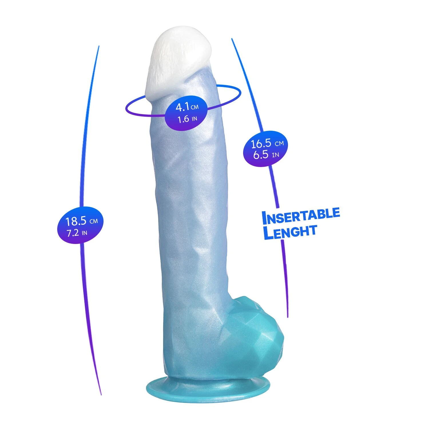 Виріб виготовлений за двошаровою технологією: зовнішній шар — м’який медичний силікон, а внутрішня структура з матеріалу Silexpan забезпечує щільність і пружність. Завдяки цьому іграшка одночасно м’яка на дотик і стабільна за формою, імітуючи природну анатомічну текстуру.