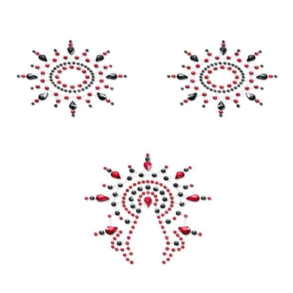 Пропонуємо купити пестіс Petits Joujoux Gloria set of 3 - Black/Red - гламурний набір ювелірних кристалів, який буде чудово виглядати, як доповнення образу сексуальної спокусниці. Більше 200 блискучих каменів на вашому тілі зроблять вас неперевершеною!
