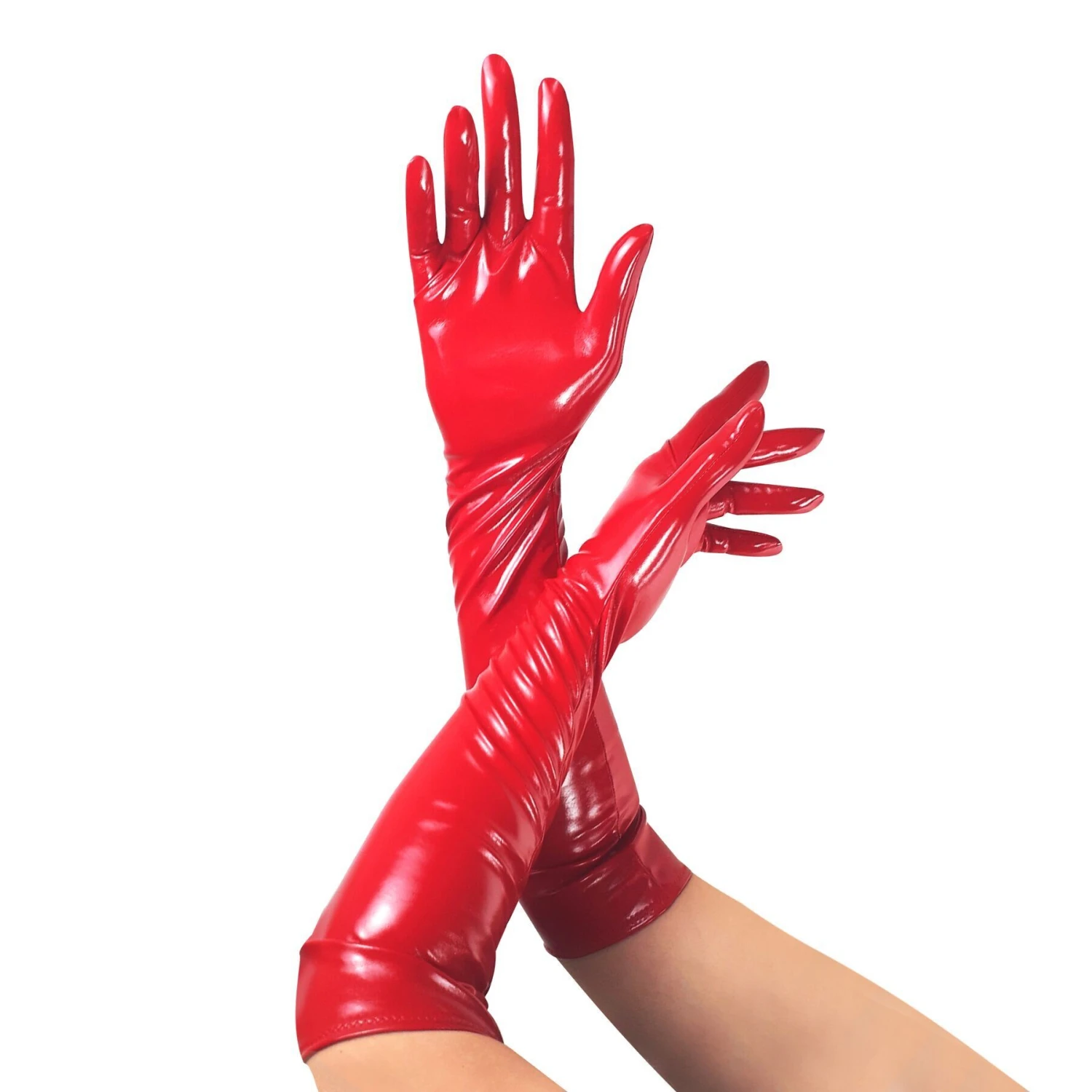 Глянсові вінілові рукавички Art of Sex - Lora, розмір М, колір Червоний