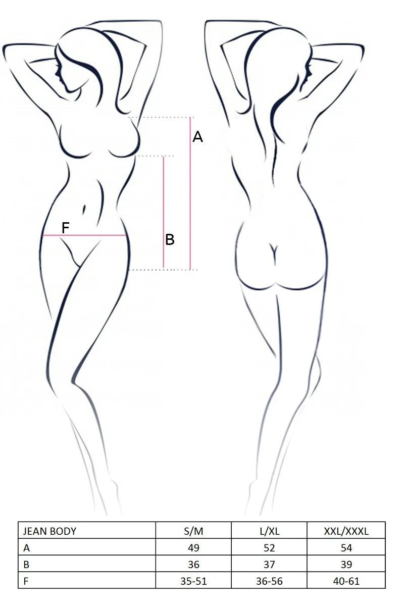 Спокусливий і еротичний боді під латекс Passion Erotic Line JEAN BODY чорний, з великими вирізами з боків, відмінно облягає тіло строго по фігурі і робить талію візуально тоншою. Родзинка білизни - глибоке декольте зі шнурівкою до животика, що приковує увагу до грудей.