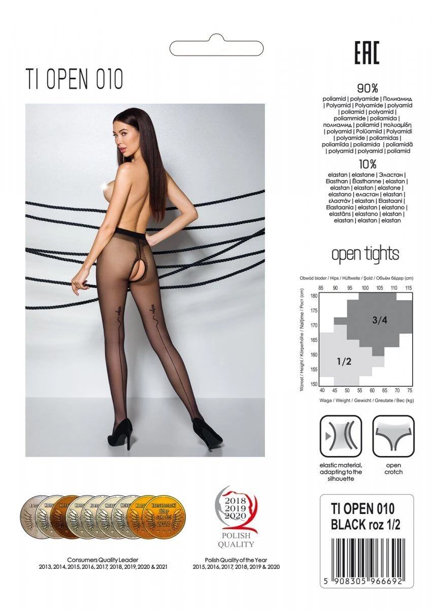 Купіть колготки з відкритим доступом, контрастна лінія TIOPEN 010 black 3/4 — Passion, відчувайте себе впевненою та сексуально привабливою завжди, навіть під час ділових переговорів.