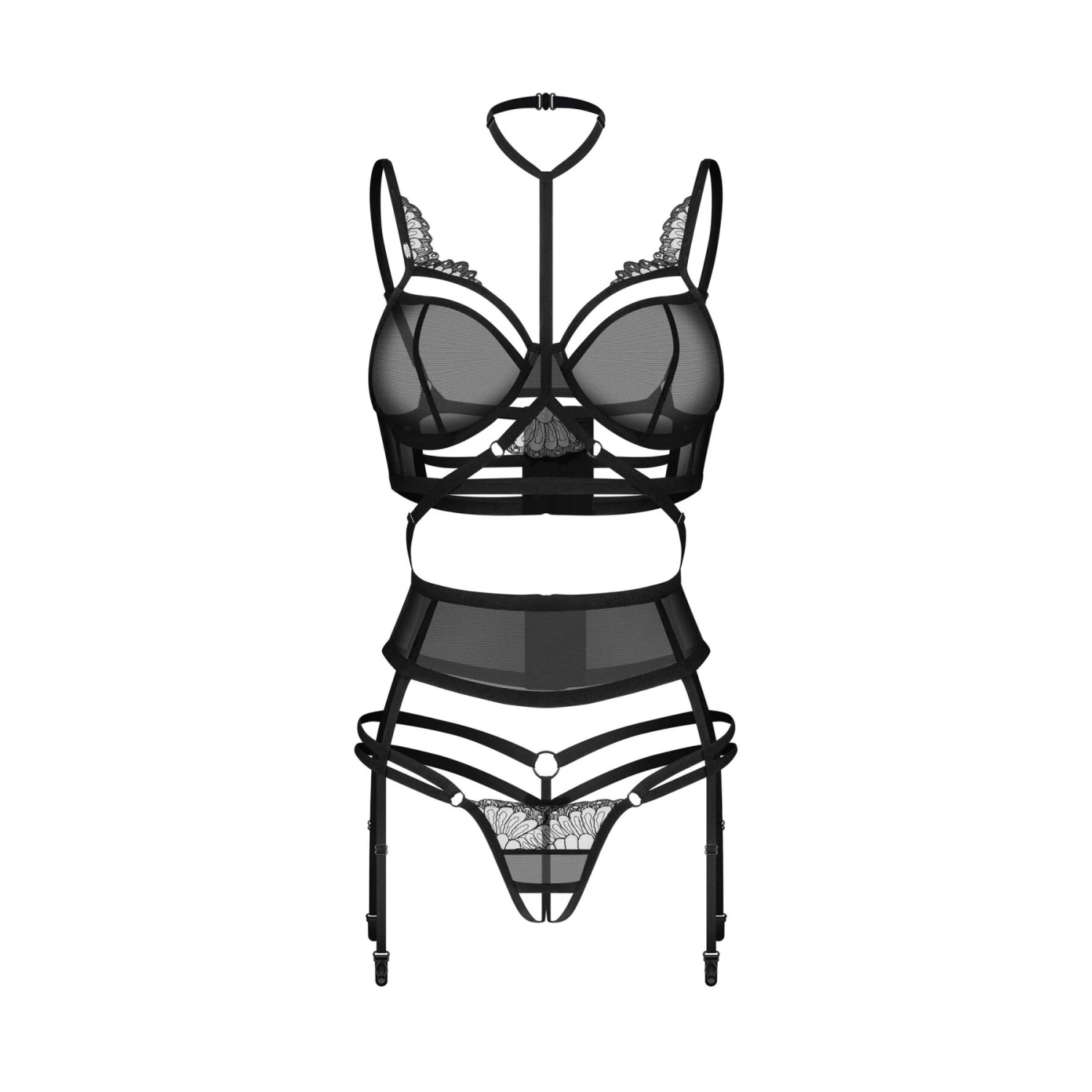 Obsessive Premisis Black 3-pcs S/M — це комплект, який неможливо забути. Чорне мереживо ніжно ковзає по тілу, створюючи образ, у якому поєднуються загадковість, жіночність і сміливість.