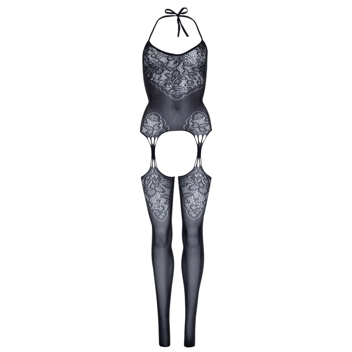Пропонуємо купити еротичний бодістокінг Leg Avenue Jacquard net з імітацією панчіх. Він виконаний з ажурної сітки, яка вигідно підкреслить усі спокусливі вигини жіночого тіла. Спереду напівпрозоре мереживо зовсім не ховає, а зухвало демонструє гарні груди. Більше щільний матеріал на талії візуально робить її вужчою, а імітація панчіх на підв’язках створює еротичний настрій.
