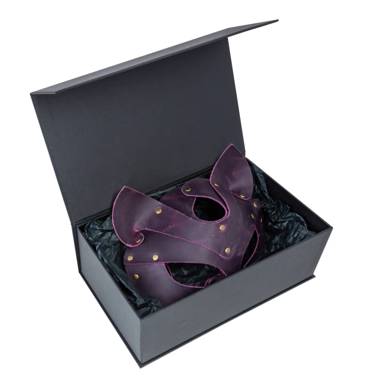 Аксесуар виконаний вручну дбайливим майстром в універсальному розмірі, ви зможете легко відрегулювати зручний варіант за допомогою кріплення на пряжці. Маска складається з 2 деталей та прикрашена оригінальною сріблястою фурнітурою. У секс шопі BrokenSofa є кілька варіантів кольорів: червоний, синій, зелений і фіолетовий.