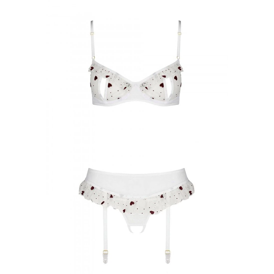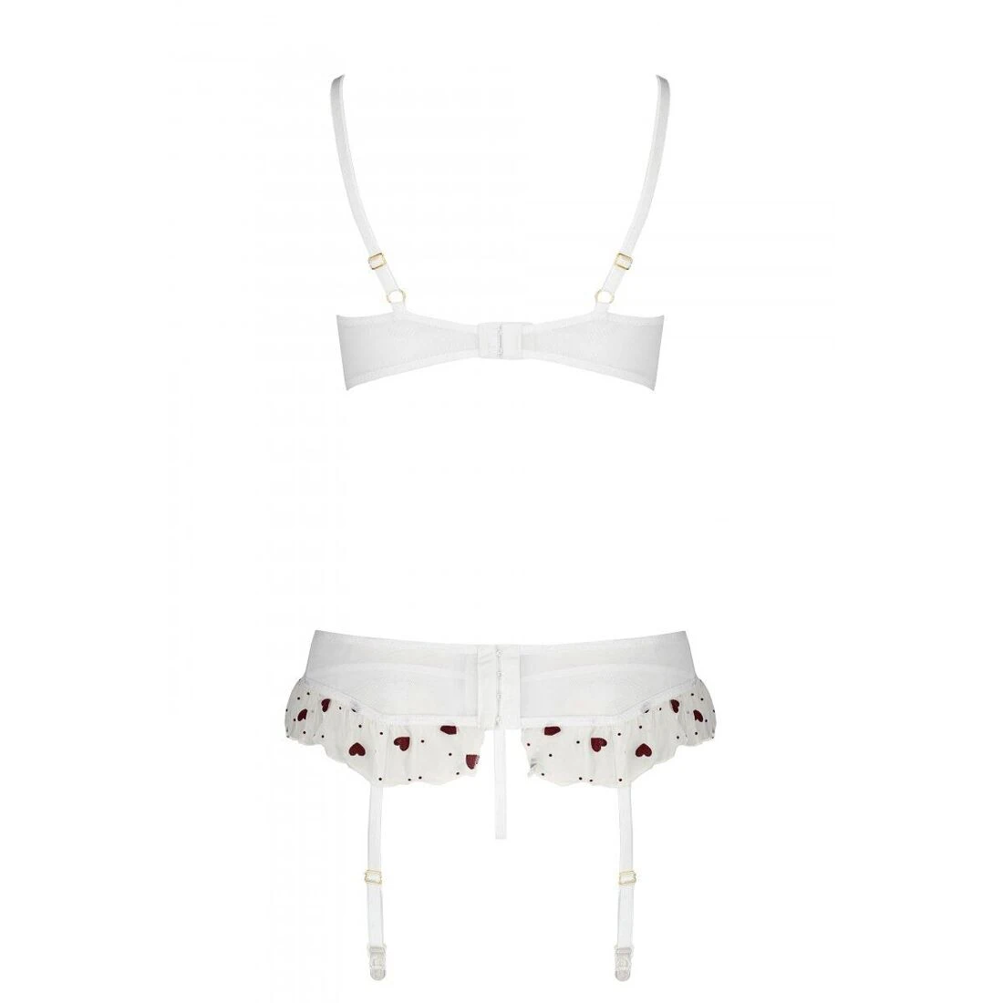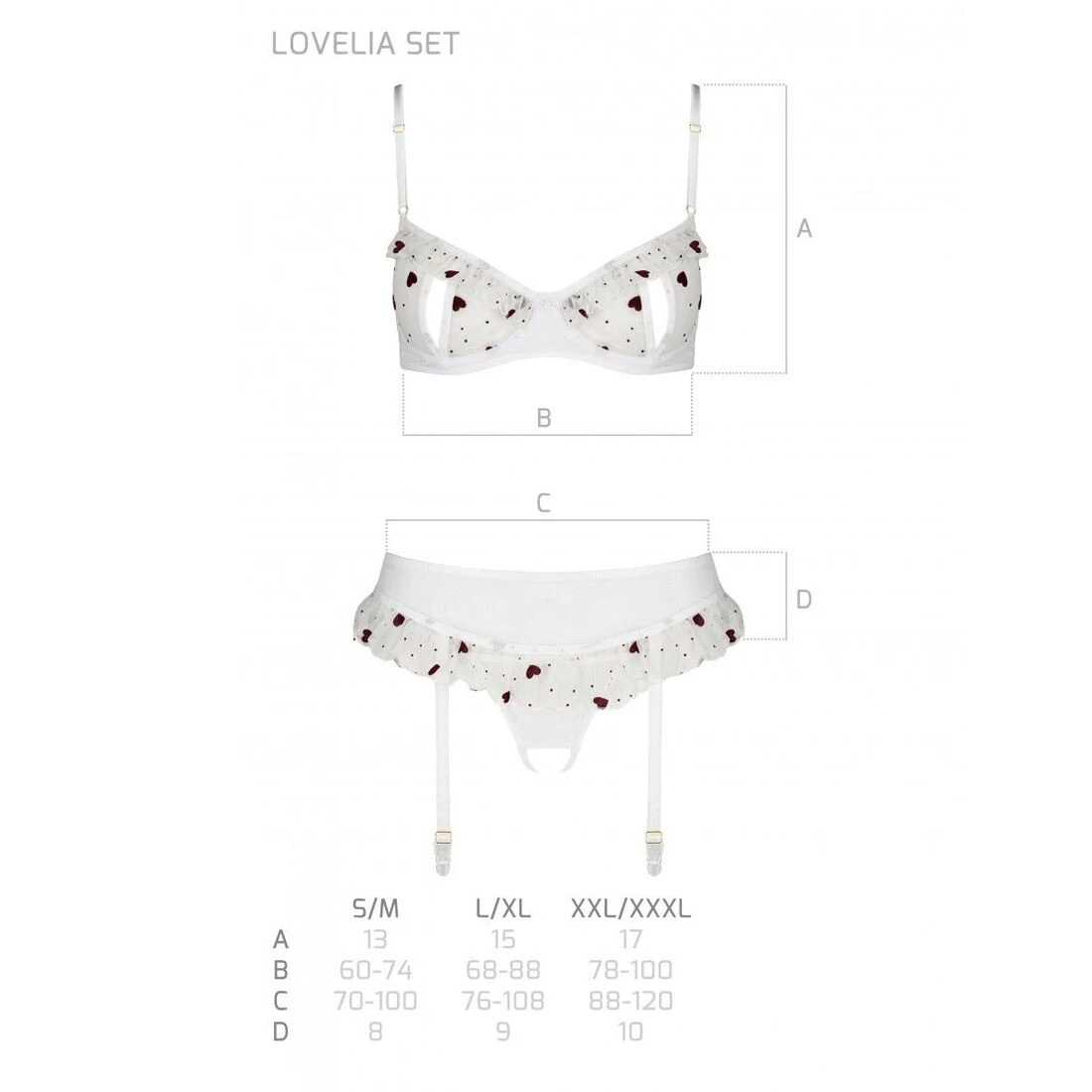 Сексуальний комплект з поясом для панчіх LOVELIA SET white L/XL - Passion виконаний з приємного еластичного матеріалу і відмінно сідає по фігурі завдяки можливості регулювання за об’ємом і висоті бюстгальтера.