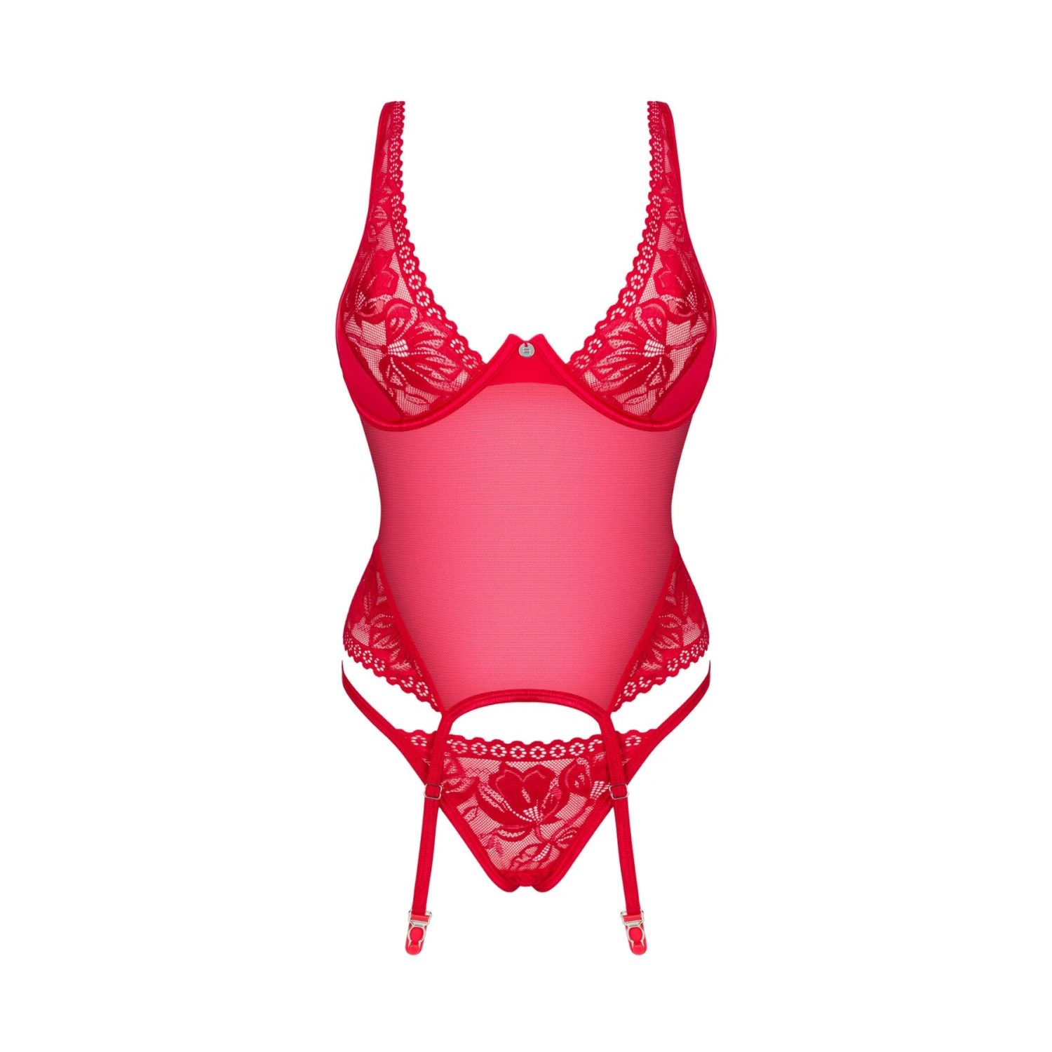 Цей червоний корсет — ідеальний вибір для особливих моментів та романтичних вечорів. Він надає вам впевненості та чуттєвості. Додайте пристрасті та елегантності у свій гардероб із білизною від Obsessive, яка обіцяє перевтілити ваш образ та подарувати вам незабутні пристрасні моменти.