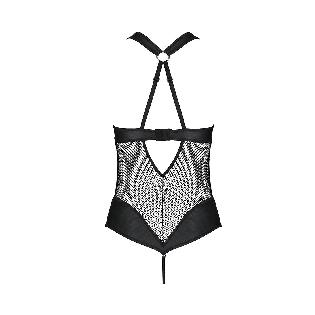 Еротичний сітчастий боді з халтером Amanda Body black XXL/XXXL - Passion завдяки, дрібній еластичній сітці з щільними вкладишами на стегнах і грудях, підкреслює плавність ліній жіночого тіла, а потім дивує повним доступом до найінтимніших зон. Перехрещені бретелі формують красиве і привабливе декольте. Декор у вигляді металевих кілець додає у вбрання родзинку. Боді можна носити під звичайним одягом, якщо додати до нього спідню білизну. А з панчохами та туфлями на високих підборах, ви отримаєте шикарний еротичний образ для романтичного вечора.