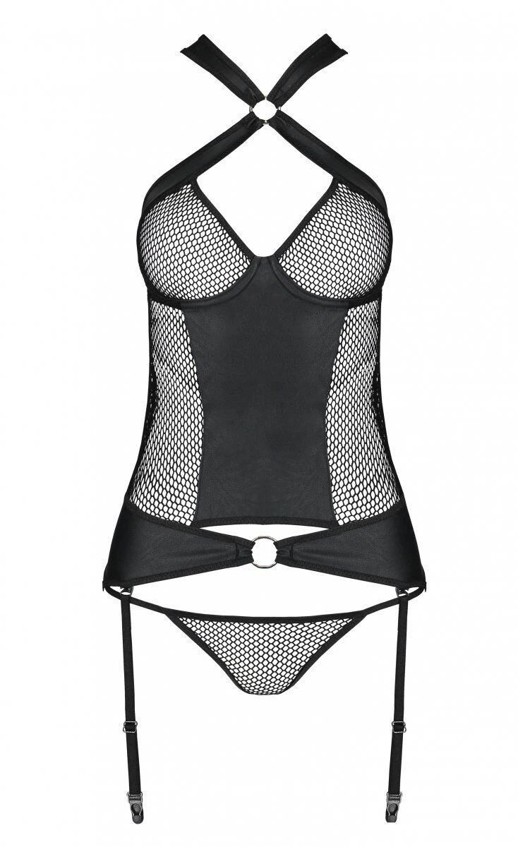 Сітчастий комплект корсет з халтером, зйомні підв'язки та трусики Amanda Corset black XXL/XXXL - Passion:
