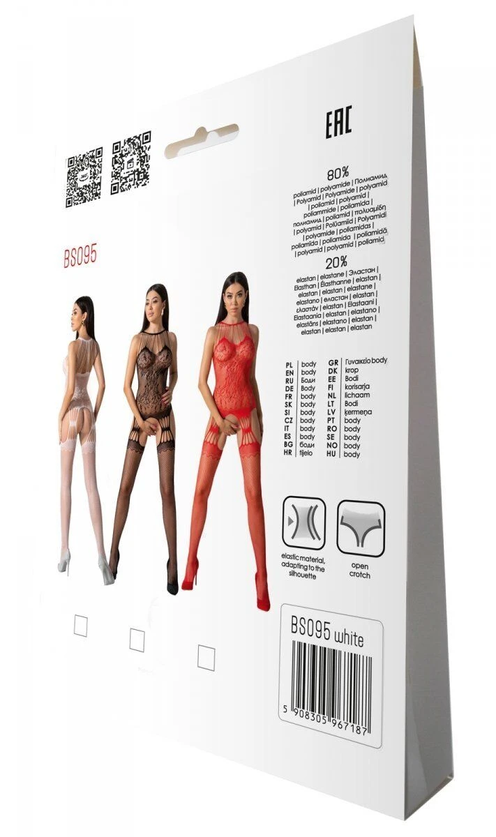 Бодістокінг з безліччю бретелей Passion BS095 має універсальний розмір і сидітиме «як потрібно», з урахуванням усіх особливостей вашої фігури. Напівпрозорий ажурний візерунок м’яко лягає по фігурі, підкреслюючи апетитність форм і ніби трохи приховуючи тіло від погляду. Це дає можливість розпалити уяву і віддатися найсолодшим фантазіям! Імітація підібраних підв’язок чуттєво виділяє лінію стегон і сідниці й трохи додає в образ хижу нотку. Імітація панчіх у сітку з середнім зерном гарно облягає ніжки, візуально їх подовжуючи, а відкритий доступ до найсолодших місць дає змогу перейти до відвертих дій, не знімаючи виробу.