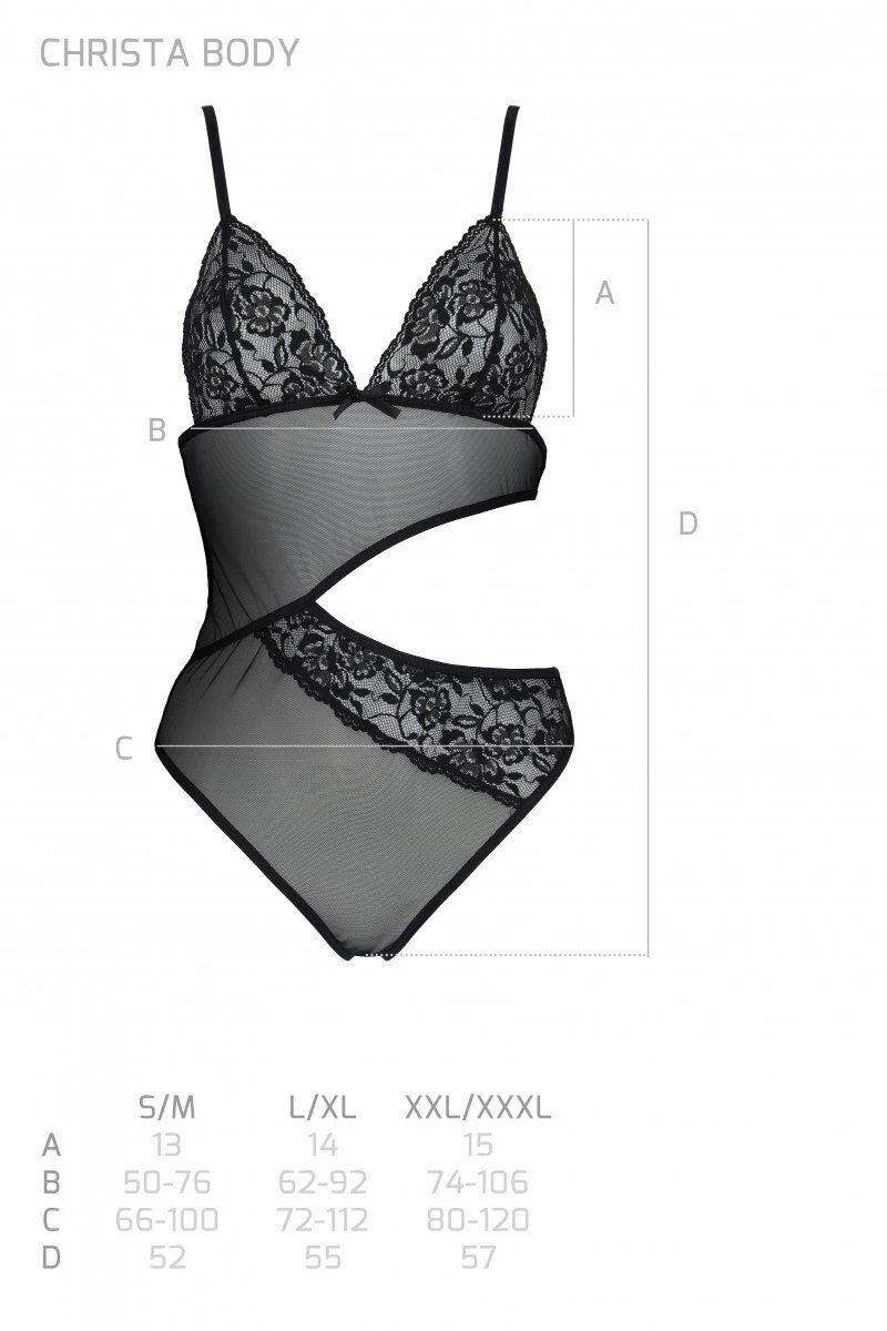 Passion Christa Body black L/XL - Боді з ажурним ліфом