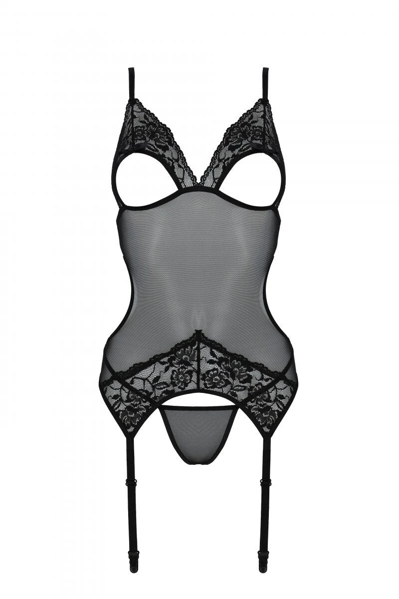Корсет із підв’язками та ажурним ліфом Christa Corset black S/M — Passion: