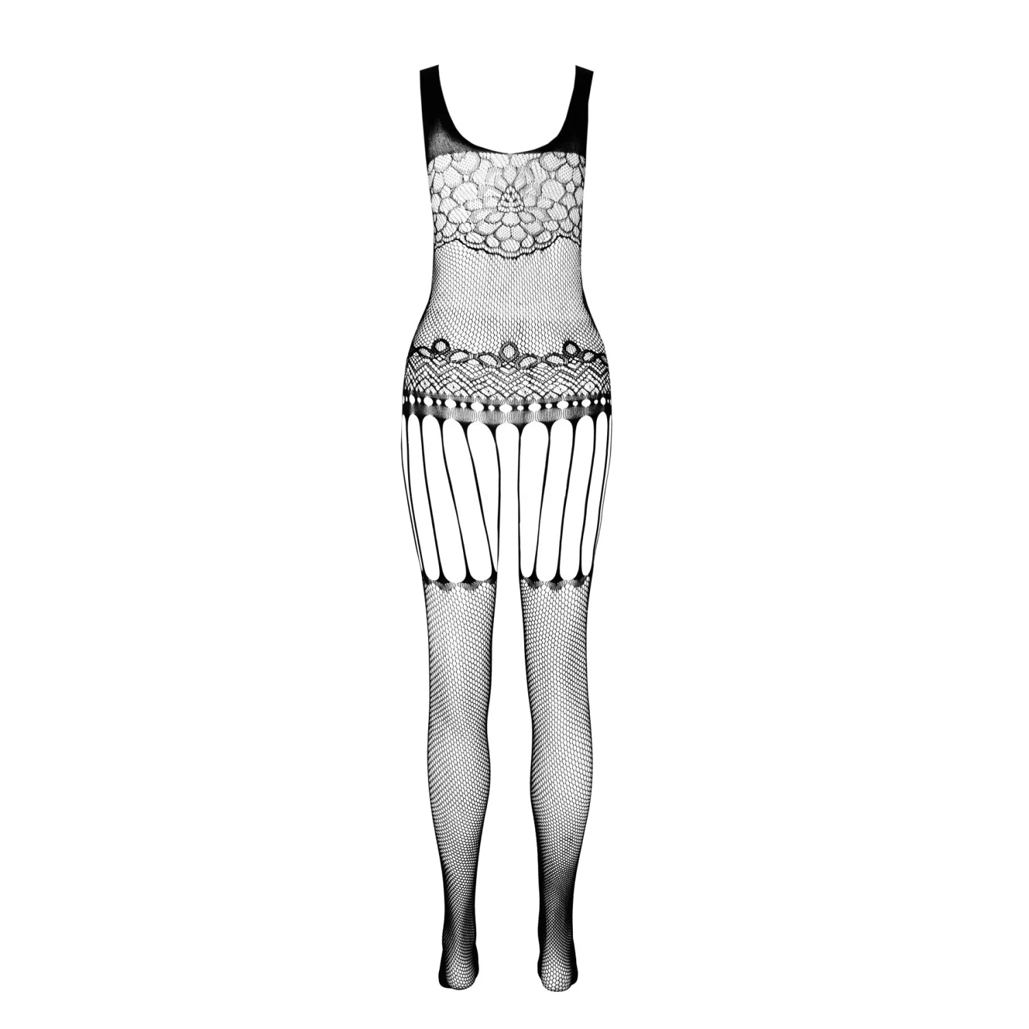 Відвертий і ніжний бодістокінг Passion ECO BS001 стане оригінальною прикрасою для тіла і підкреслить найапетитніші частини жіночої фігури. Квітковий декор на грудях та стегнах, розставляє хвилювальні акценти та допомагає створити гарний силует. Еластична дрібна сіточка щільно облягає тіло та приховує можливі недоліки фігури. Тонкі шнурки імітують підв’язки, візуально подовжуючи ніжки. Глибока горловина додає образу вишукану витонченість, а повністю відкриті руки підкреслюють жіночну тендітність. Кожен ваш рух у такому вбранні гіпнотизуватиме чоловіка, не залишаючи навіть шансу для опору. Повний доступ до інтимних зон дасть змогу легко перейти до найвідвертіших пестощів та дій, не знімаючи вбрання. Завдяки дрібній сіточці цей еротичний бодістокінг можна легко надіти під звичайний одяг або додавши до нього туфлі на високих підборах, зробити його основним вбранням для пристрасного вечора вдвох.
