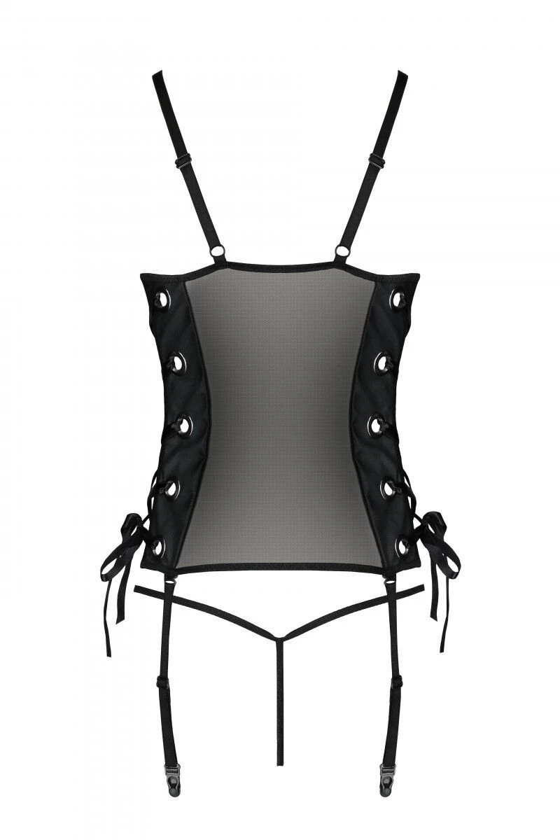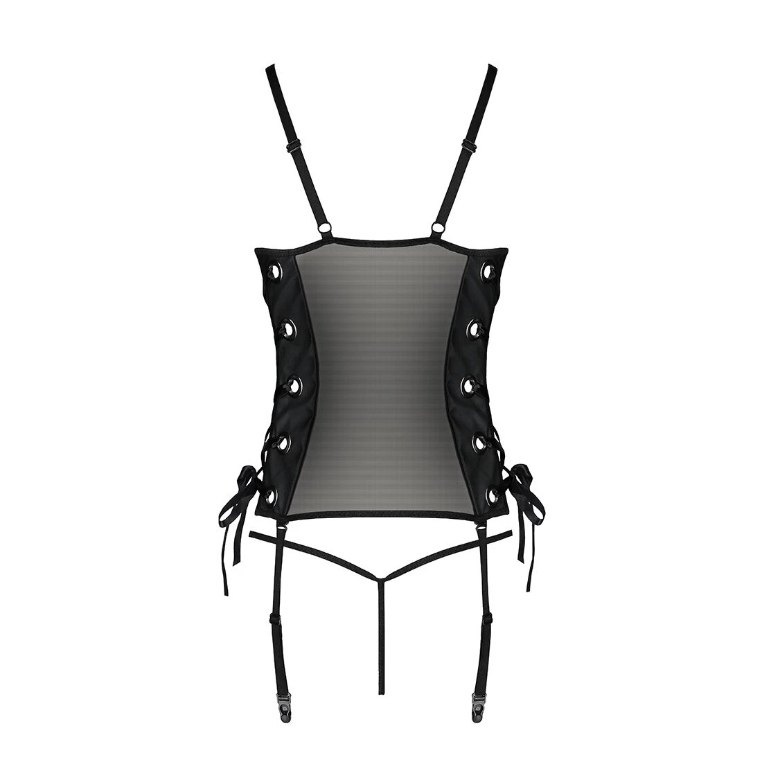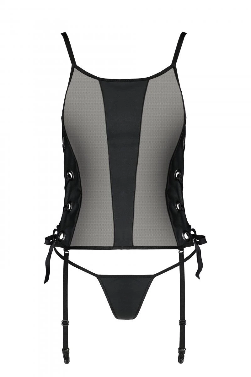 Сітчастий корсет з екошкіри, з люверсами та знімними пажами Malwia Corset black XXL/XXXL — Passion: