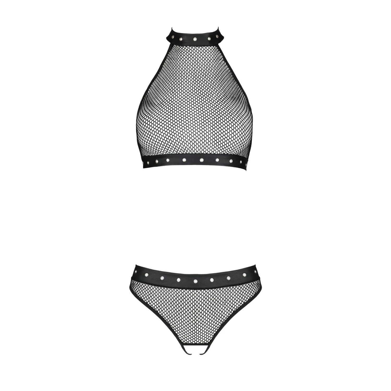 У комплекті ви знайдете топ, а також трусики з відкритим доступом та завищеною талією. Топ доповнюється застібкою у вигляді вишуканого чокера, є виріз під бюст, що змушує уяву працювати з новою силою. Прозора сіточка викличе в чоловіка непереборне бажання, адже перед ним відкриється завіса чуттєвої таємниці. Підігнати білизну легко, адже трусики оснащені застібкою ззаду. Округлість сідниць чудово підкреслена вирізом у формі перевернутого трикутника. Промежина трусиків відкрита, тому образ вийде неймовірно сексуальним.