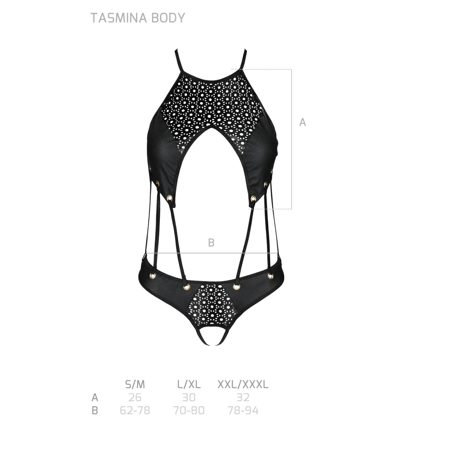Пропонуємо купити унікальне боді з відкритим доступом Passion TASMINA BODY в чорному кольорі з екошкіри та відкритим доступом. Боді збагачене вишуканими ажурними вставками, які надають цьому виробу неймовірну елегантність та сексуальність. Боді Tasmina — спідня білизна, призначена для жінок, які люблять експериментувати зі своїм гардеробом. Модель створена з декоративними люверсами та ремінцями, а гарні, ажурні прикраси надають образу неповторного, вишуканого характеру.