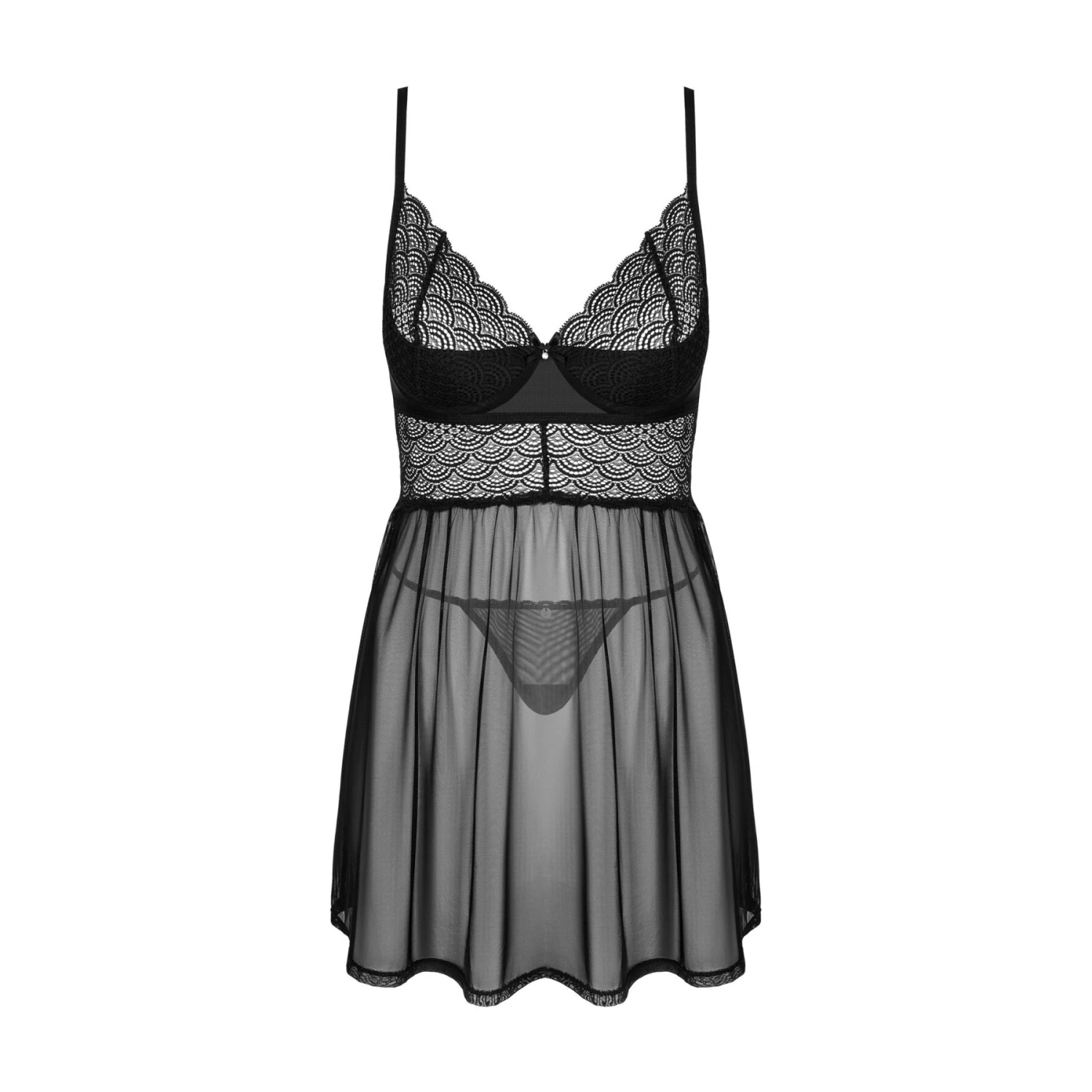 Еротичний комплект Obsessive Chemeris babydoll & thong складається з пеньюара та стрінгів.